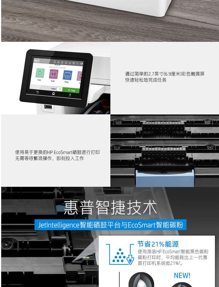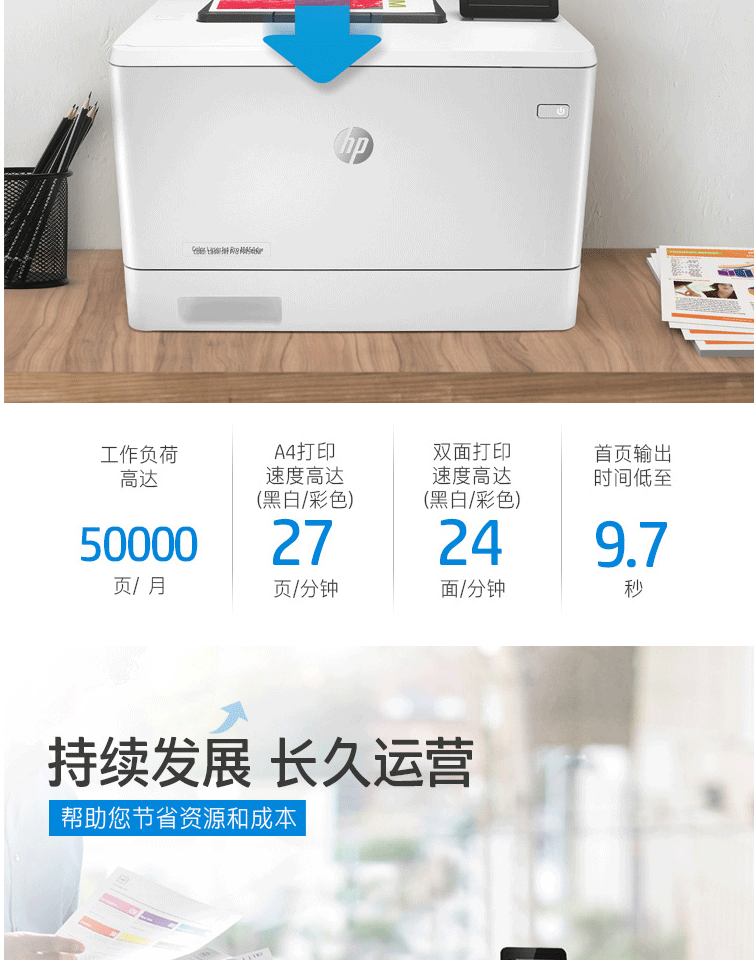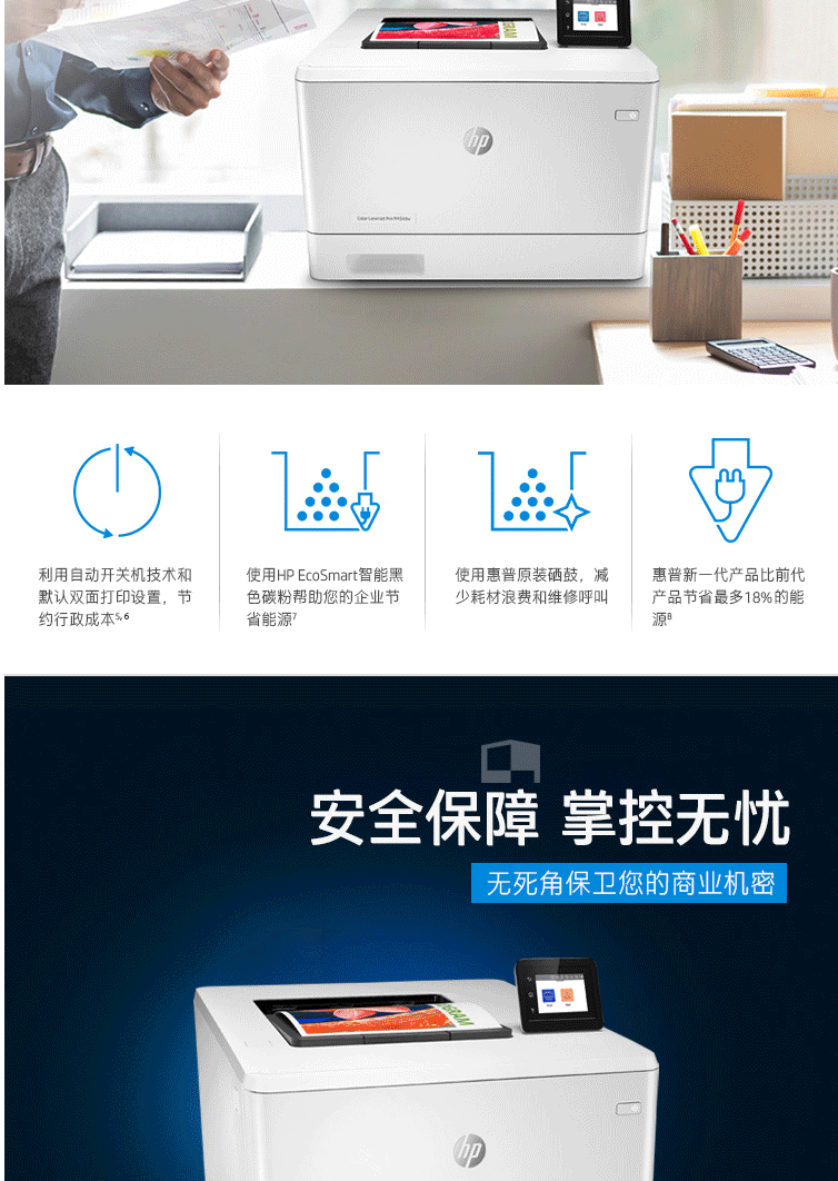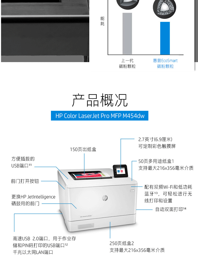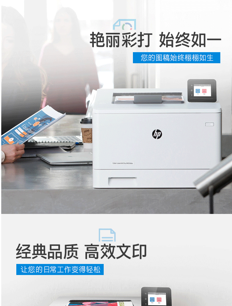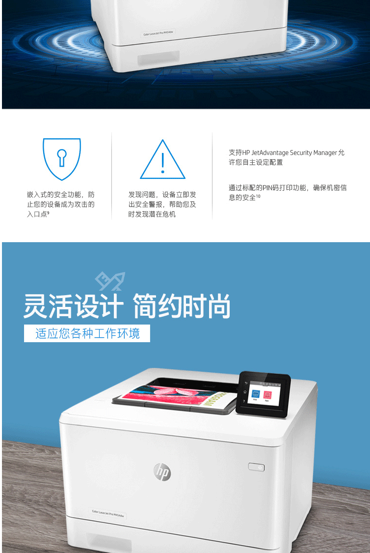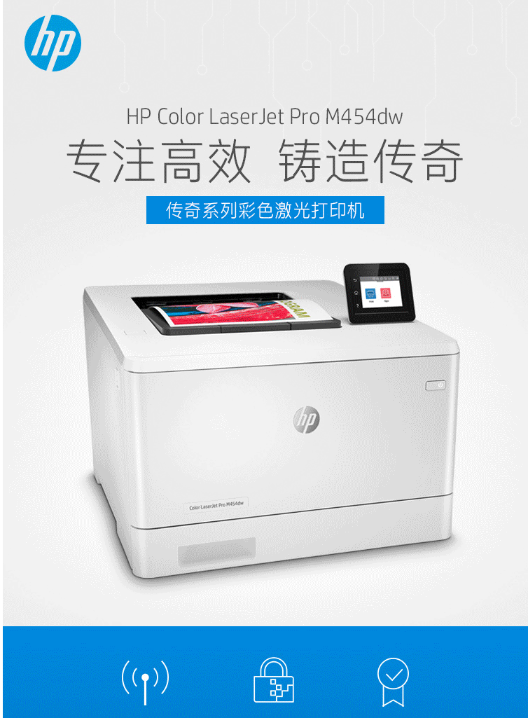惠普(HP)M454dw彩色激光打印机 彩色打印 液晶显示屏 自动双面打印 无线连接