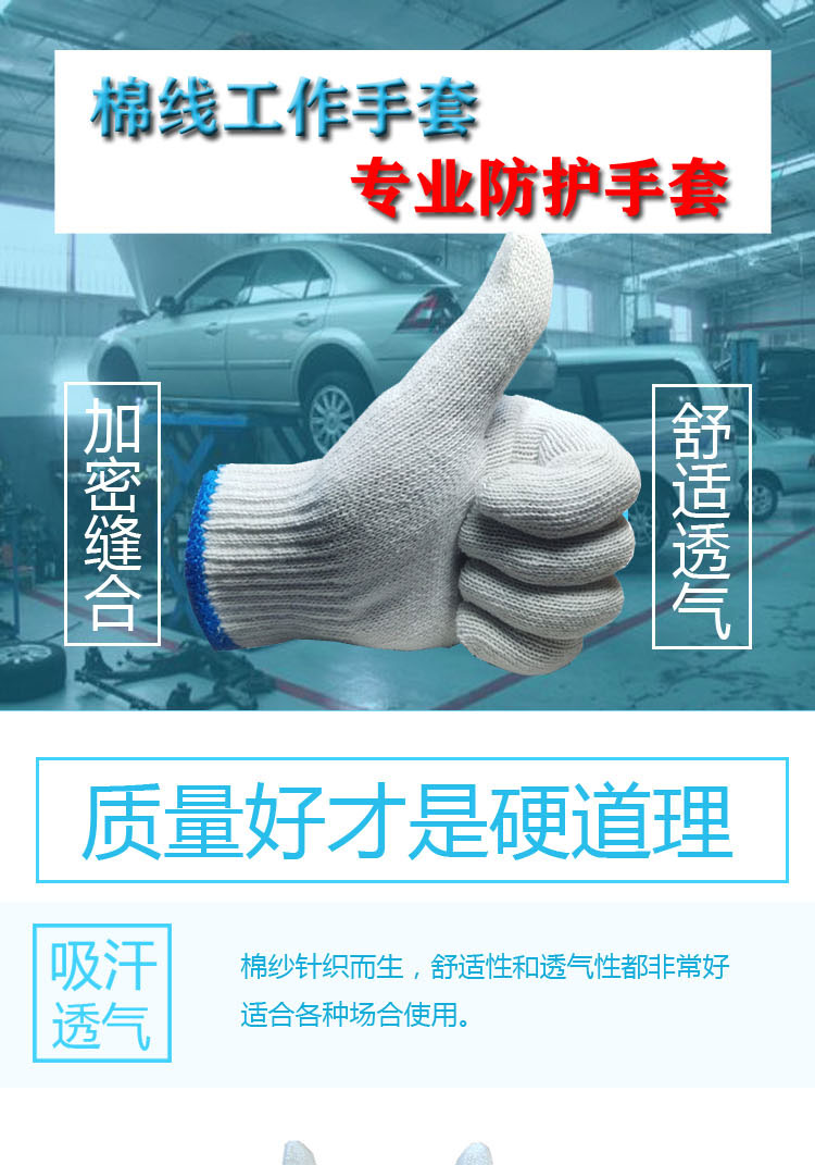 商品名称:棉线手套劳保手套工作白棉纱耐磨防护防滑手套 一双