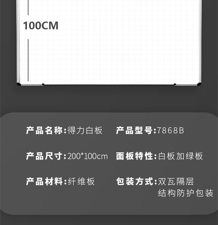 商品名称:得力7868B白板2000*1000(白)