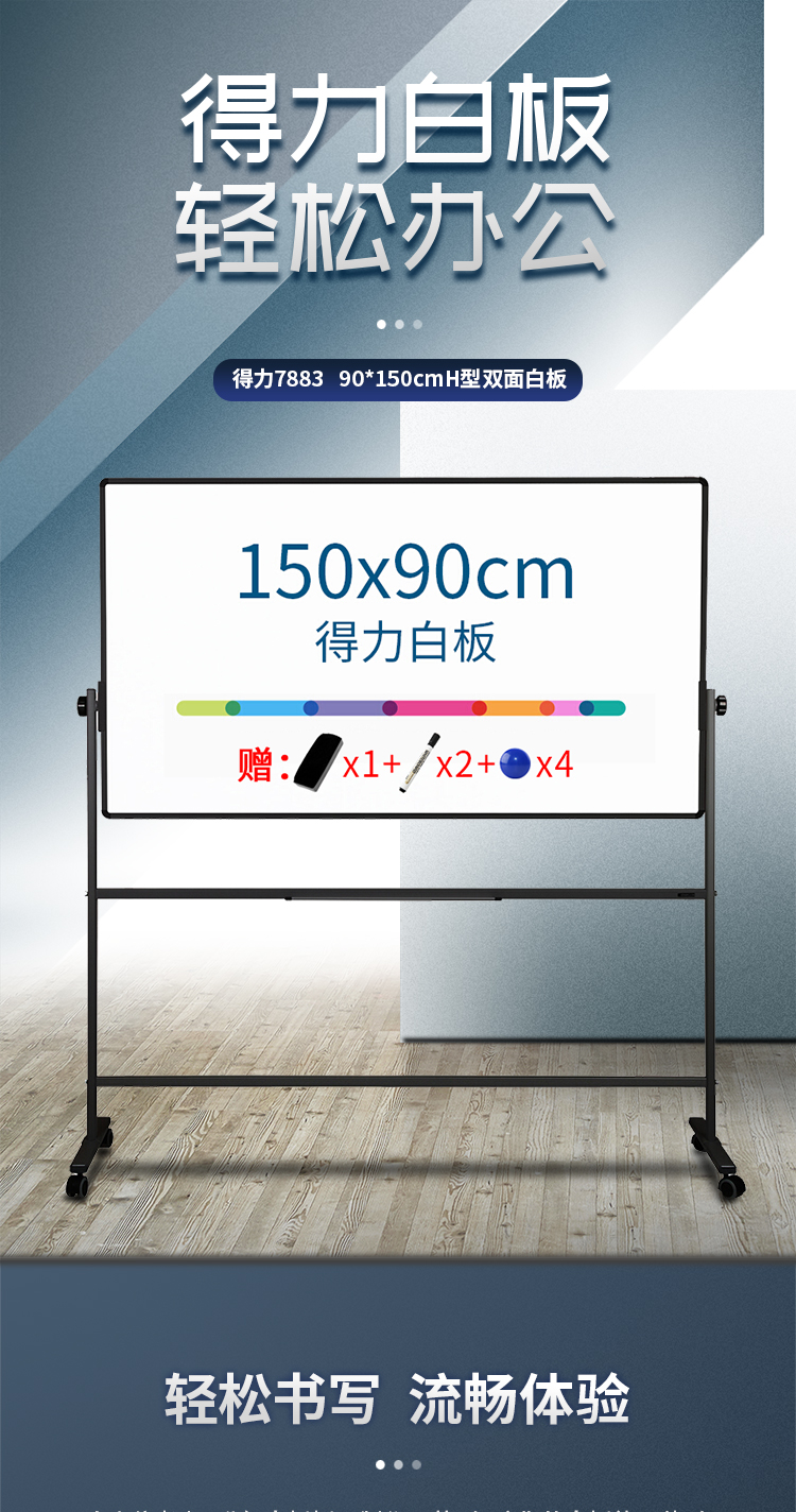 得力7883H型双面白板900*1500(银灰)(块)