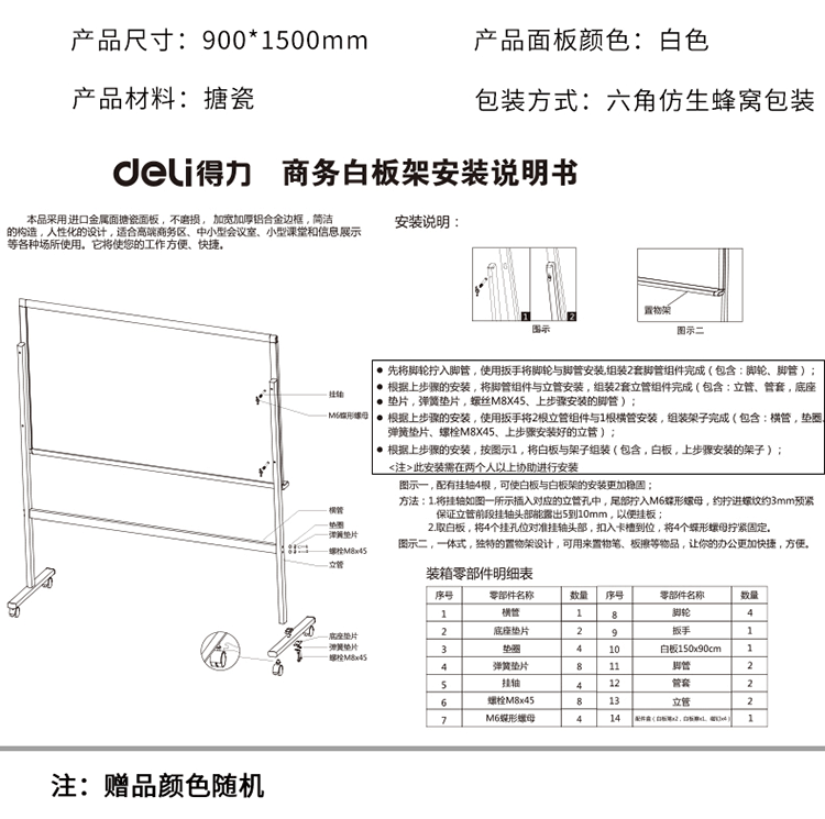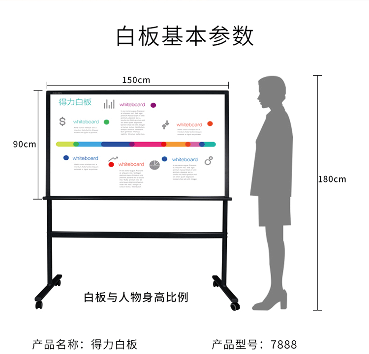 商品名称:得力7888商务白板1500*900(深灰)(块)