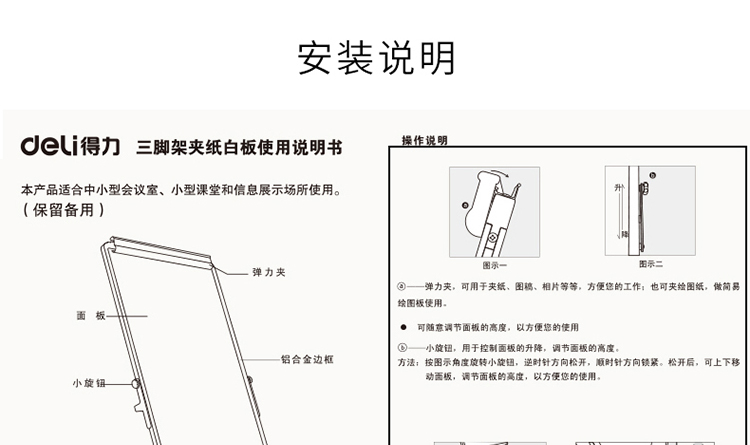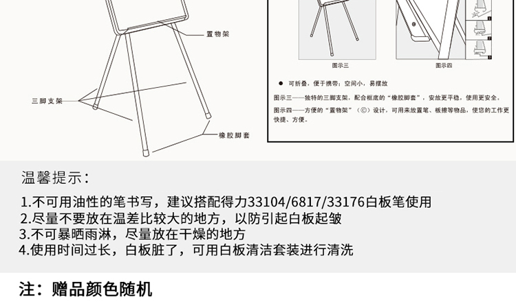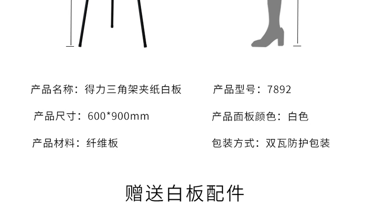 商品名称:得力7892三脚架白板900*600(黑)(块)