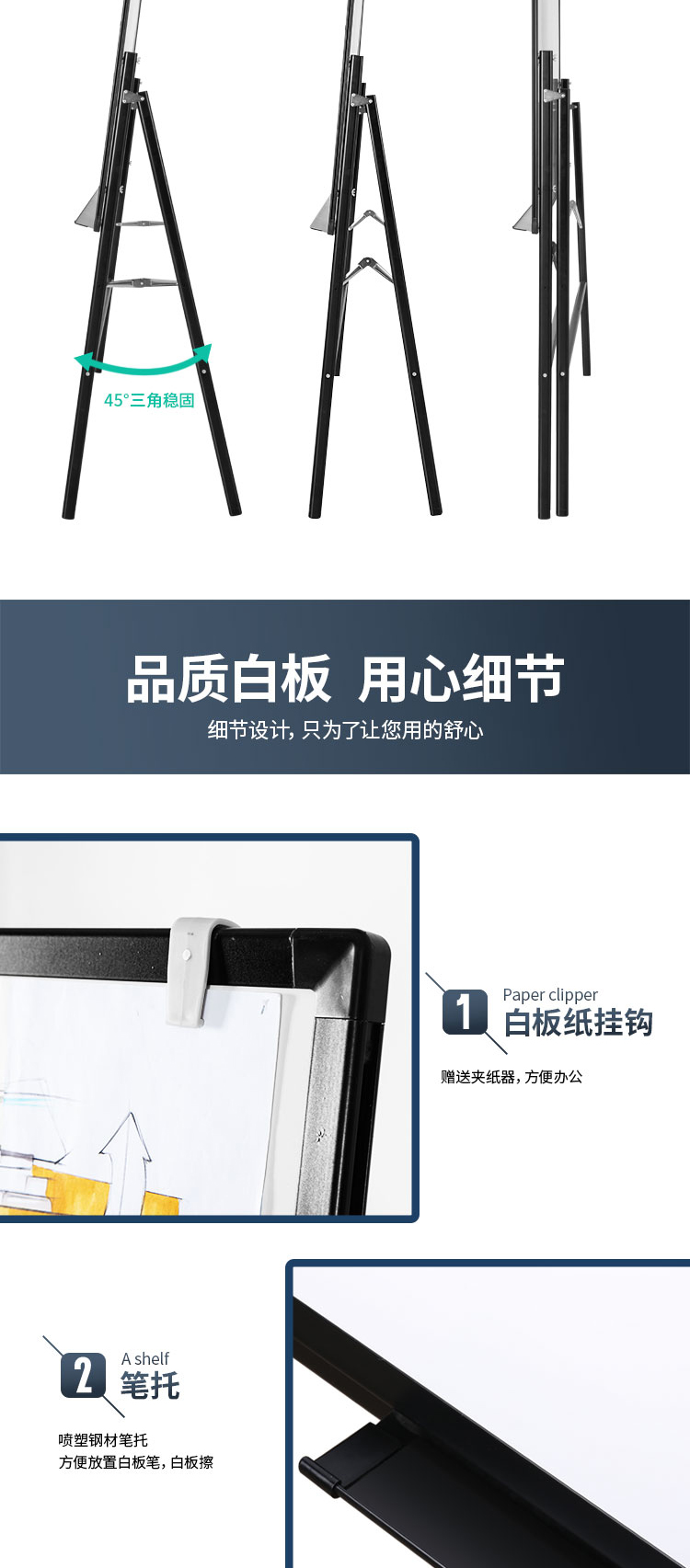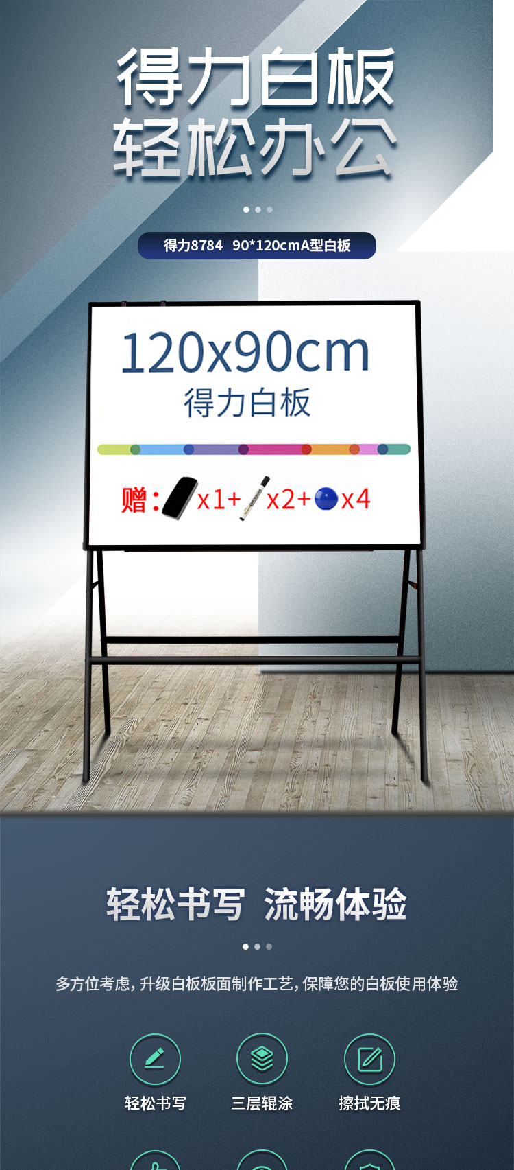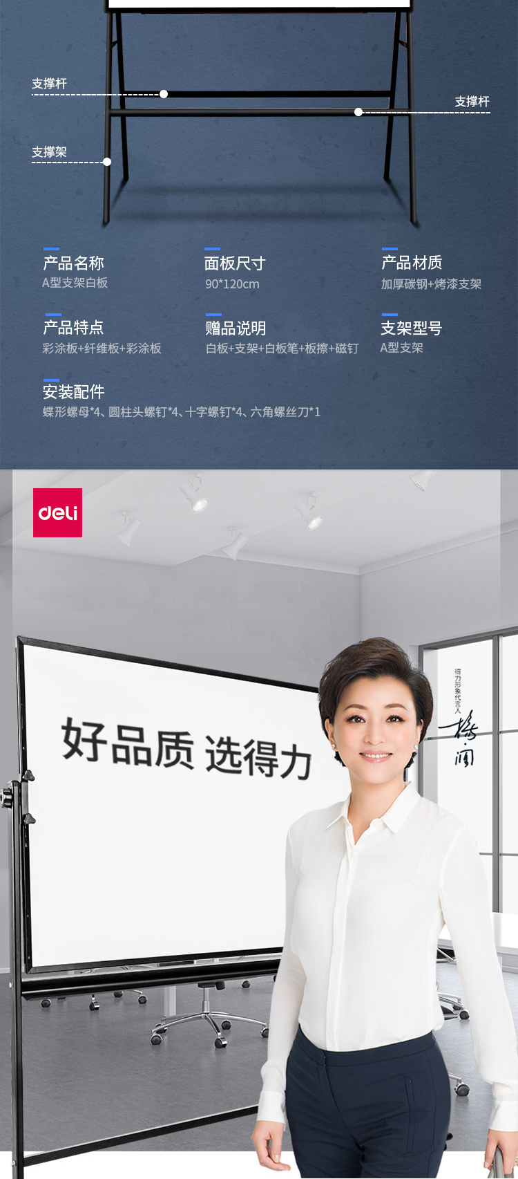 商品名称:得力8784_A型架会议白板1200*900(黑色)(块)