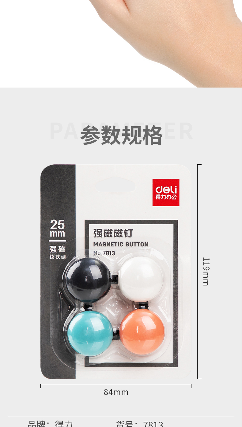 商品名称:得力7813强磁磁钉25*13mm(混)(卡)