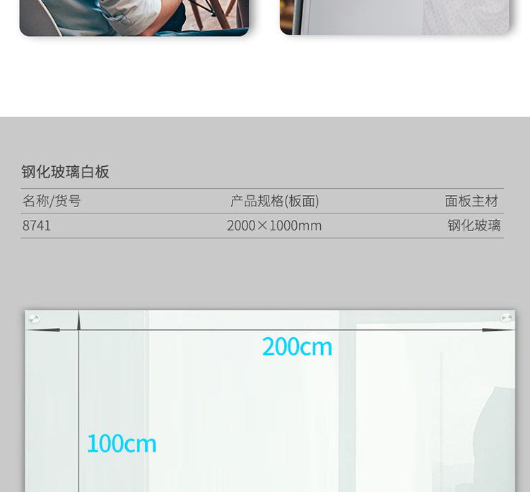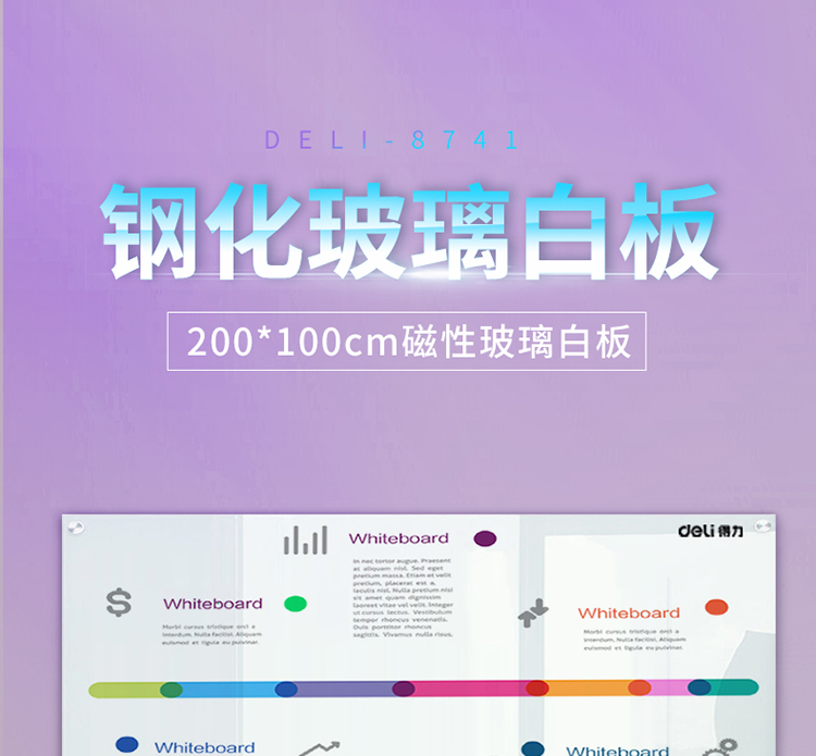 商品名称:得力8741磁性玻璃白板2000*1000mm(白)