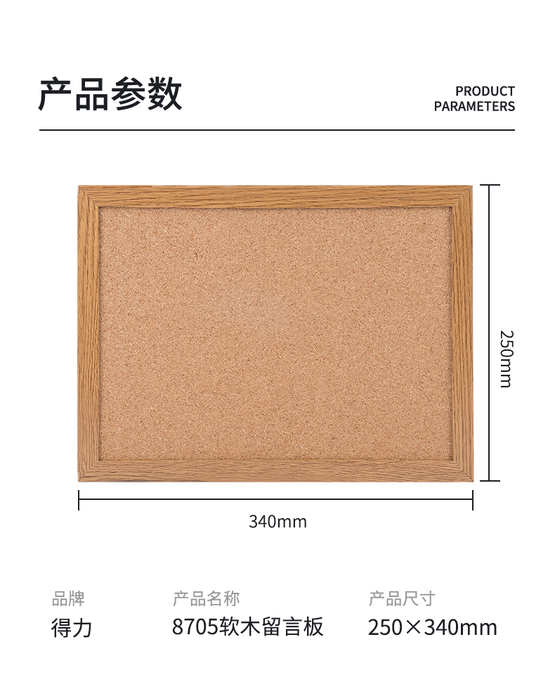 商品名称:得力8705软木留言板340*250(黄)(块)