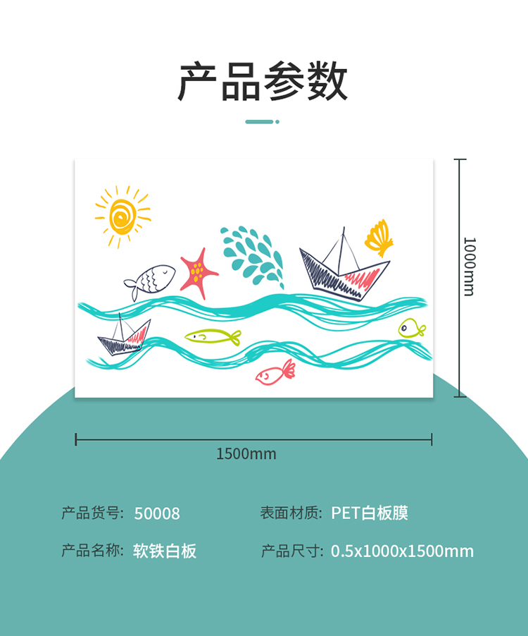 商品名称:得力50008软铁白板1500*1000*0.5mm(带胶)(白色)