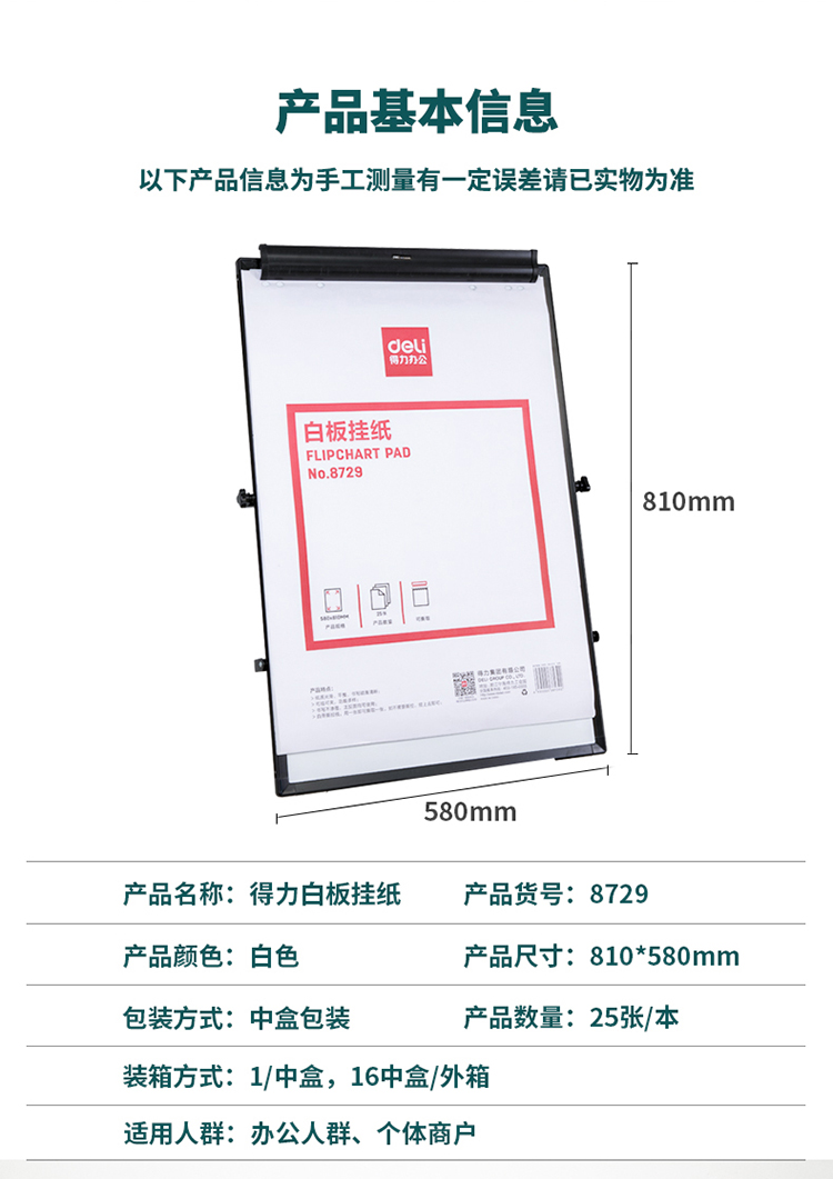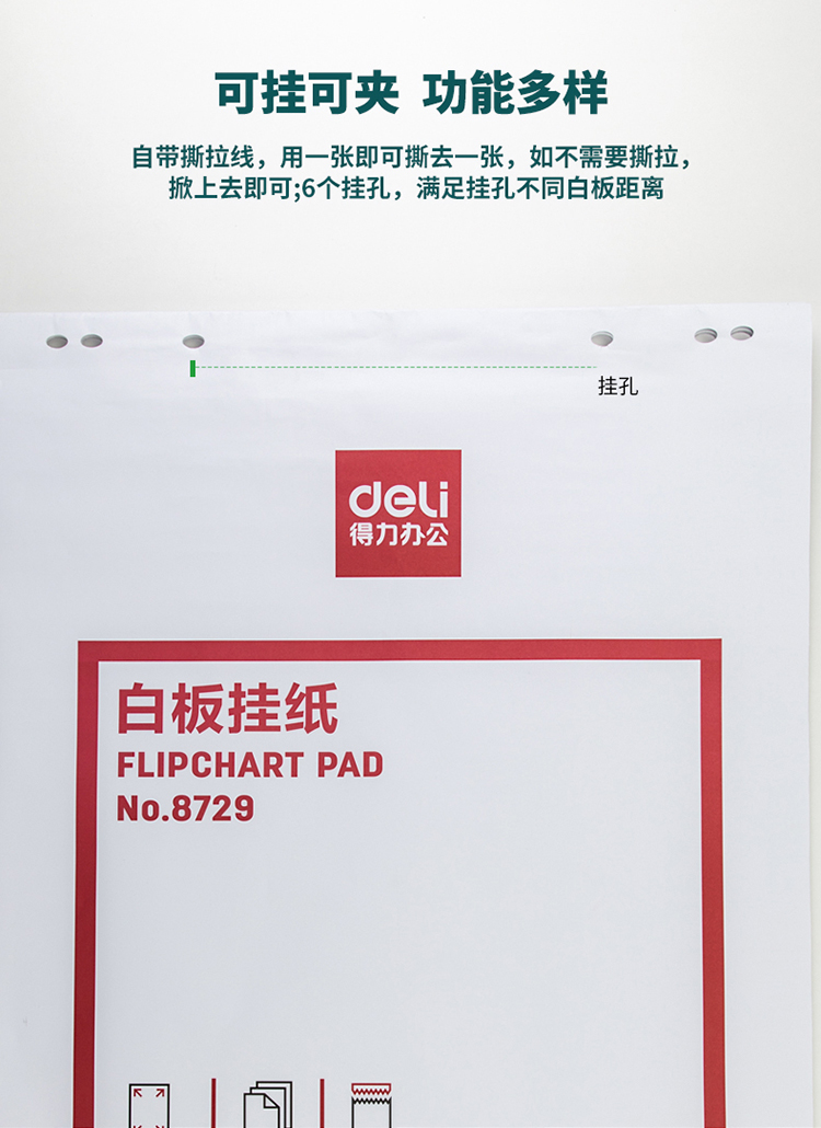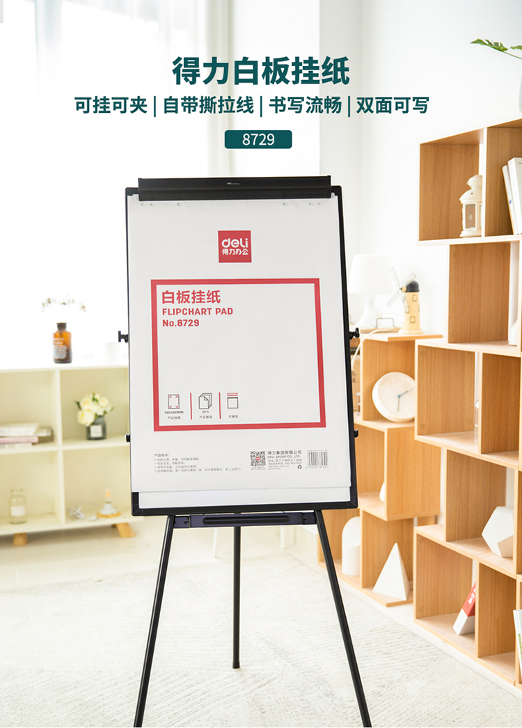 商品名称:得力8729白板挂纸810*580mm(25张/卷)(白色)