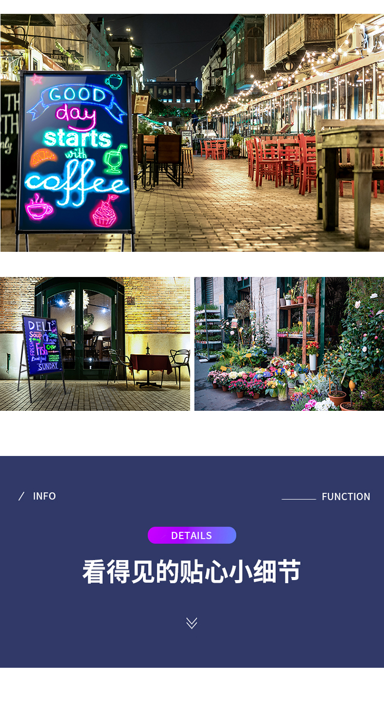 商品名称:得力8732_A型架电子荧光黑板60*80cm(黑色)