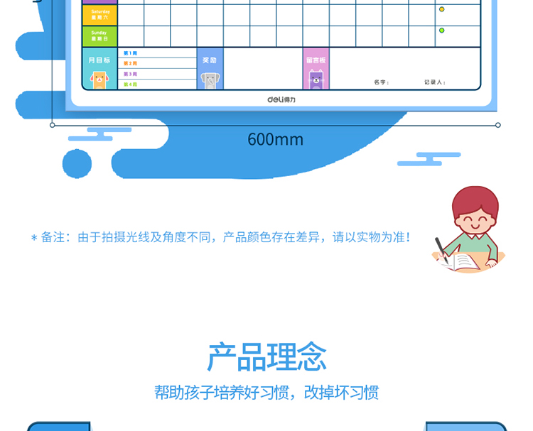 商品名称:得力8749儿童成长自律表600*400mm(蓝色)