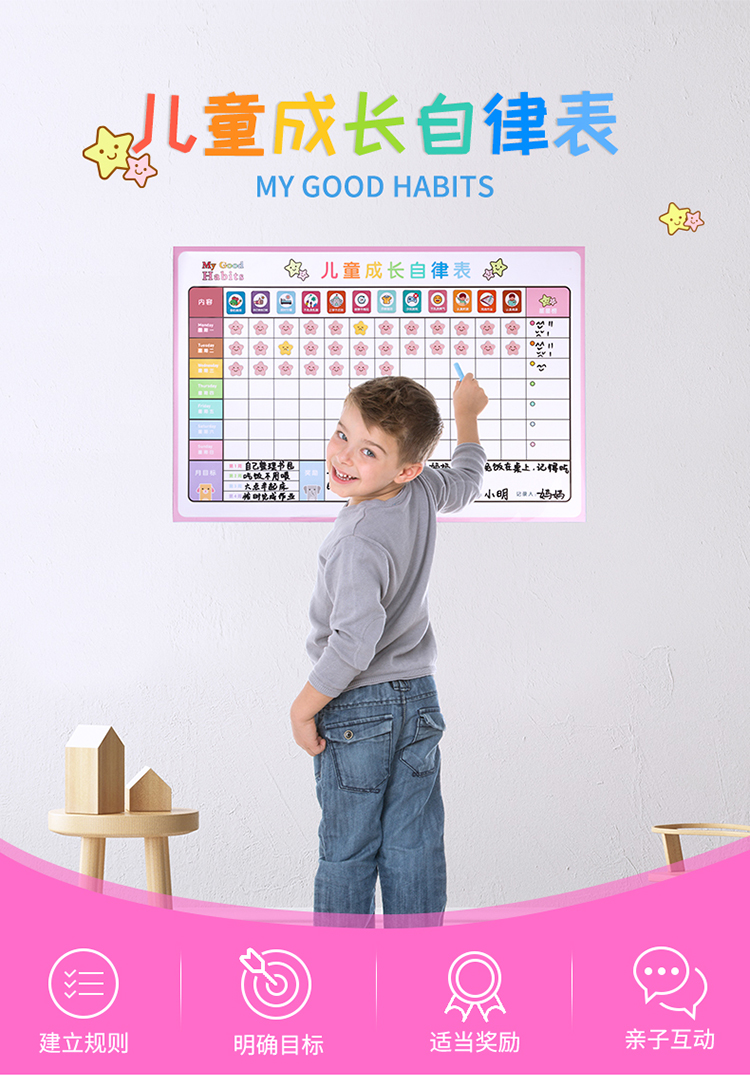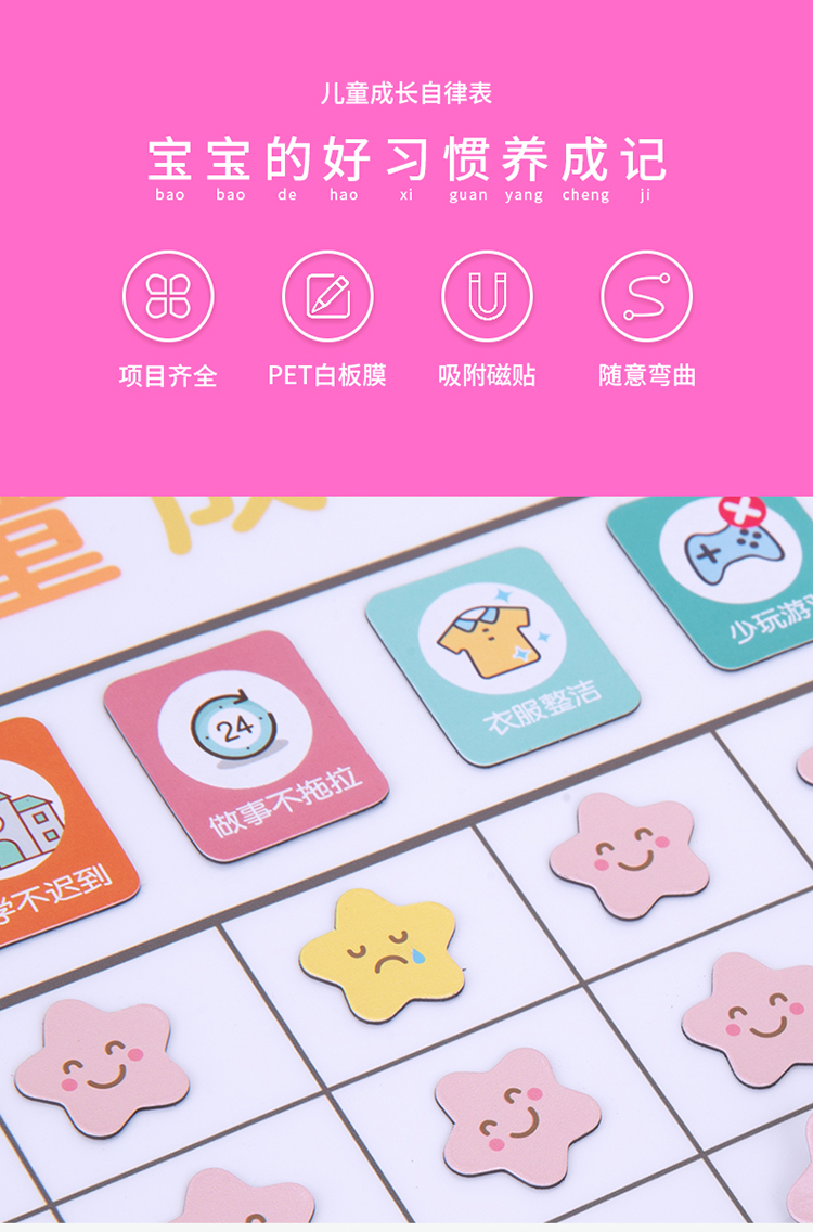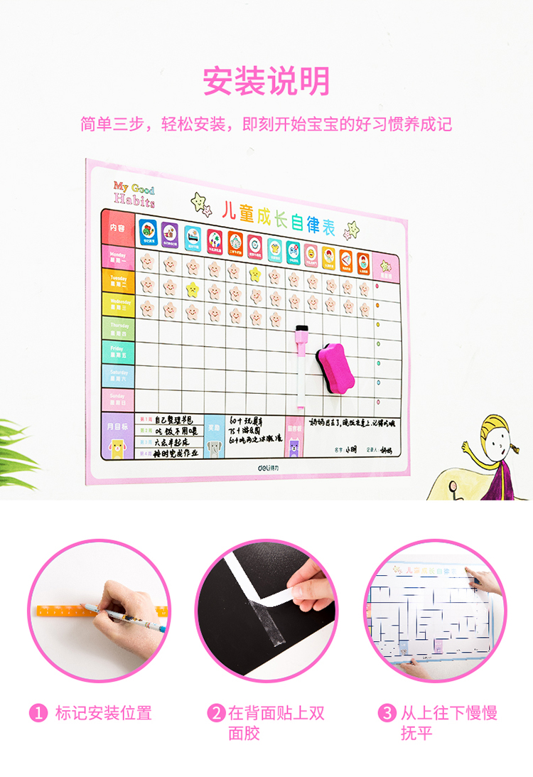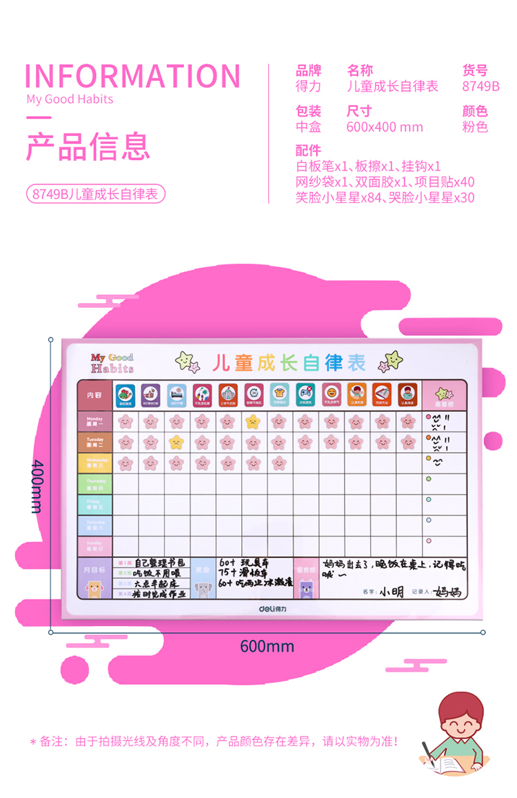 商品名称:得力8749B儿童成长自律表(女版)600*400mm(粉色)