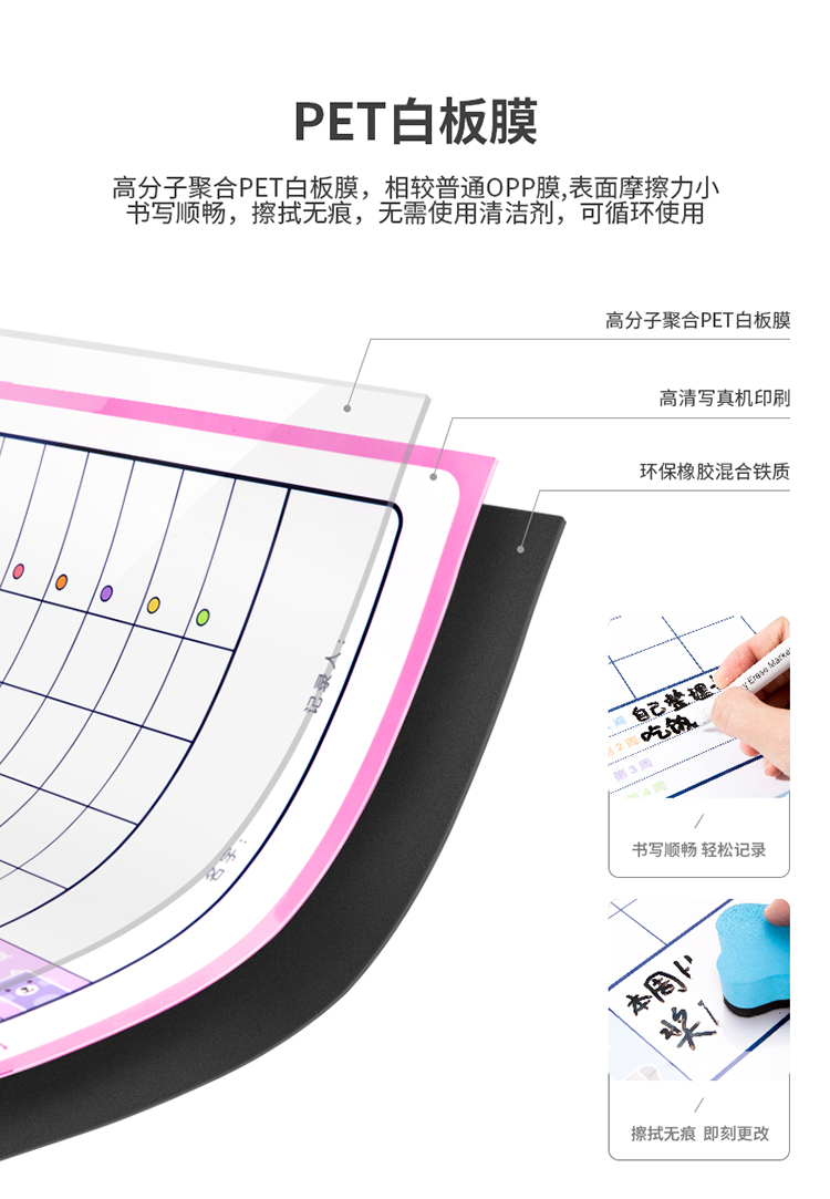 得力8749B儿童成长自律表(女版)600*400mm(粉色)