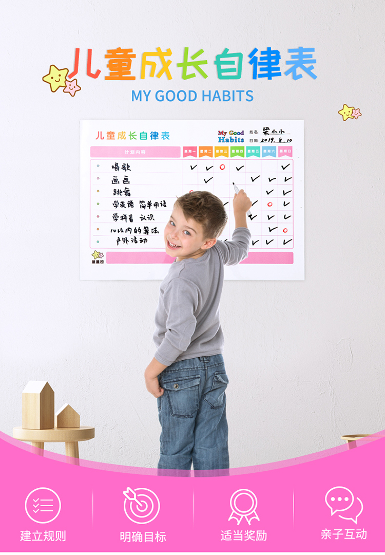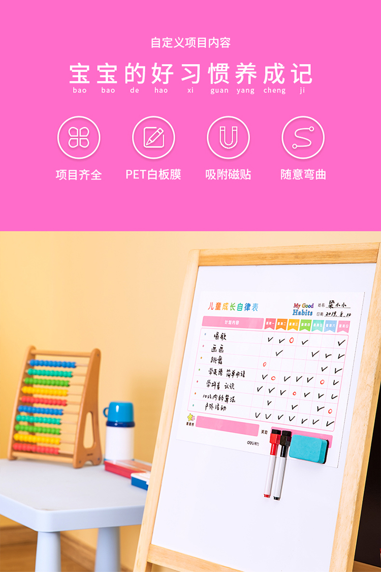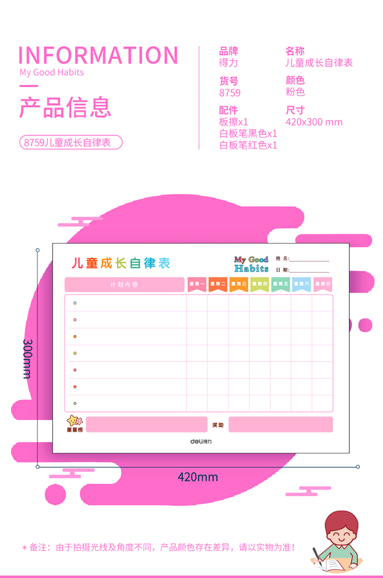 商品名称:得力8759儿童成长自律表420*300mm(粉色)(块)