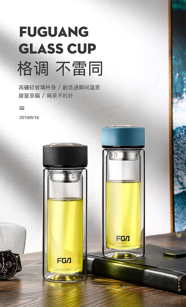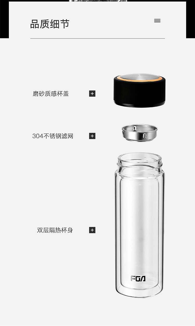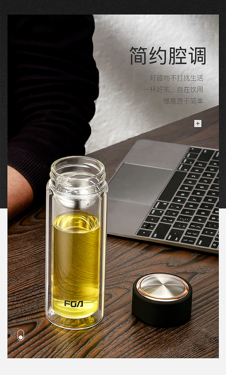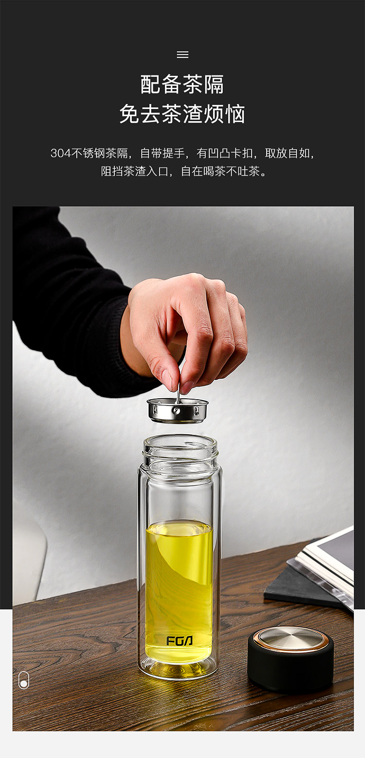 商品名称:富光 双层玻璃杯 304不锈钢茶隔水杯子 320ML雅黑