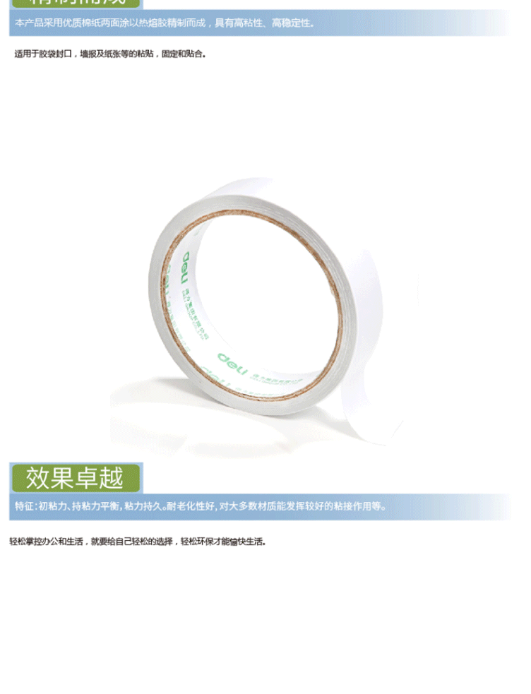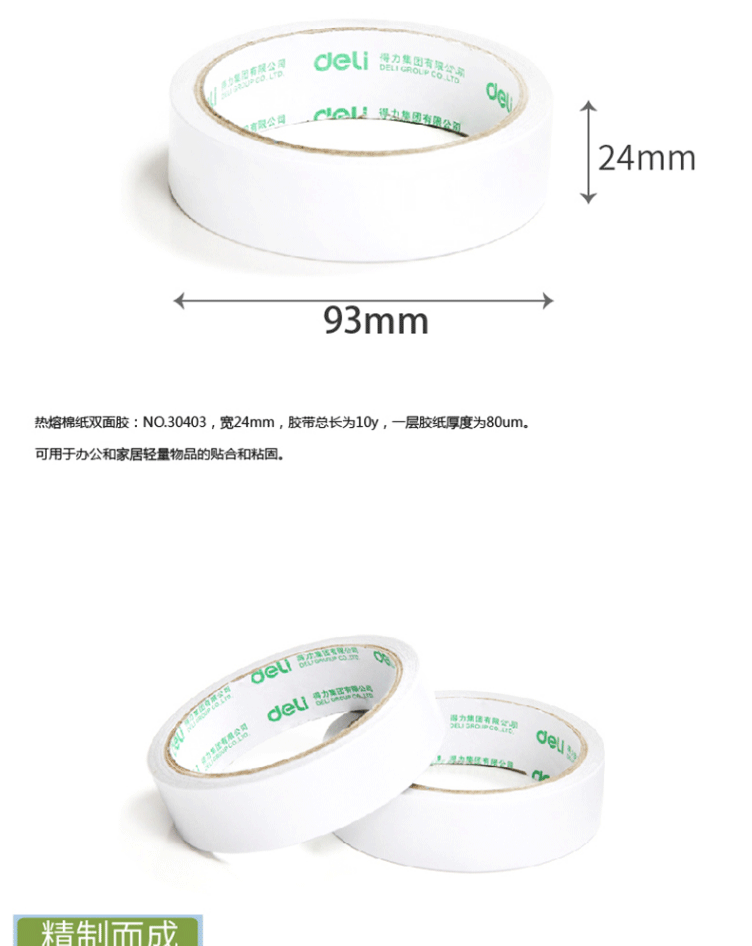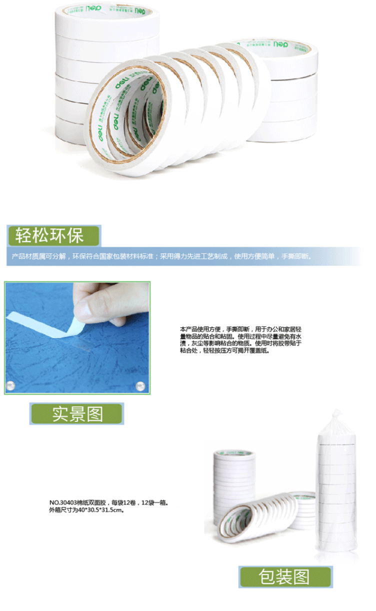 商品名称:得力(deli) 高粘性棉纸双面胶带 (24mm*10y) 30403(单位:卷)