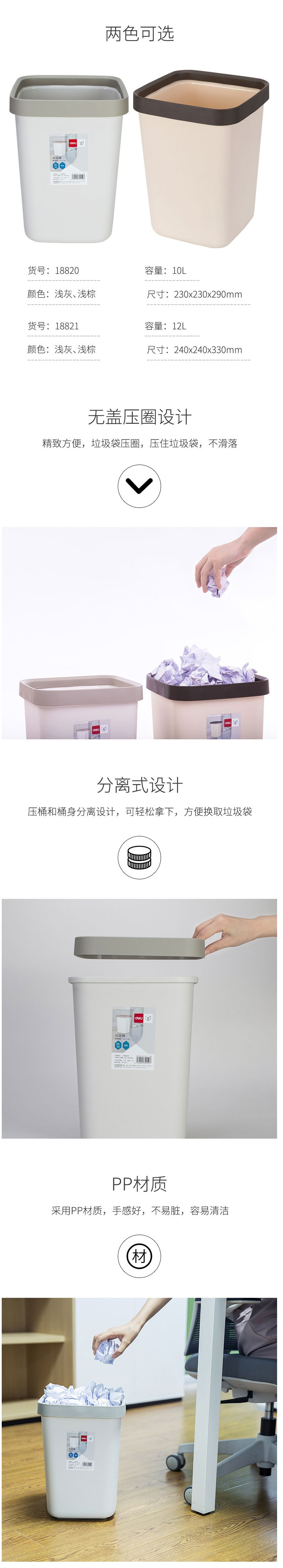商品名称:得力(deli)压圈方形垃圾桶 纸篓 18820