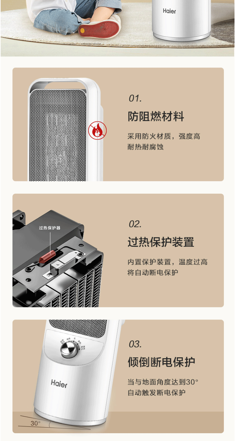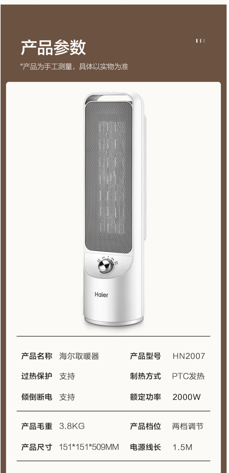 商品名称:海尔 取暖器 立式速热电暖气 小型烤火炉 机械式 HN2007