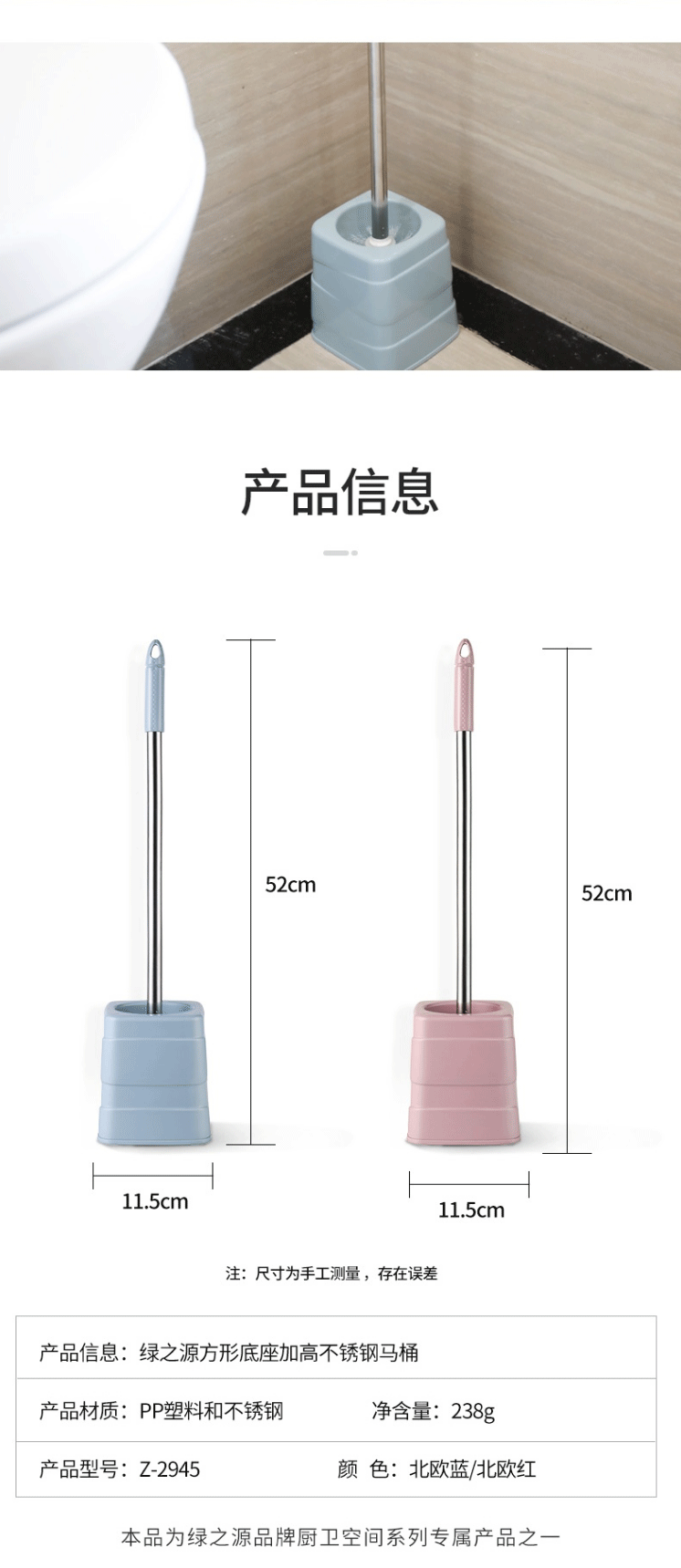 商品名称:绿之源 方形底座加高不锈钢马桶刷套装 颜色随机