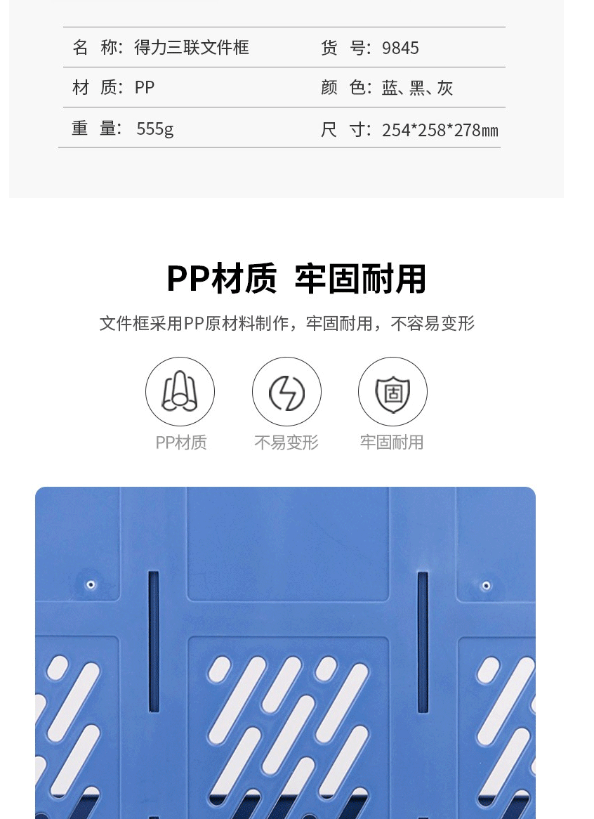 商品名称:得力 四联文件框 资料框可自由拆装组合文件架文件筐 9846黑色