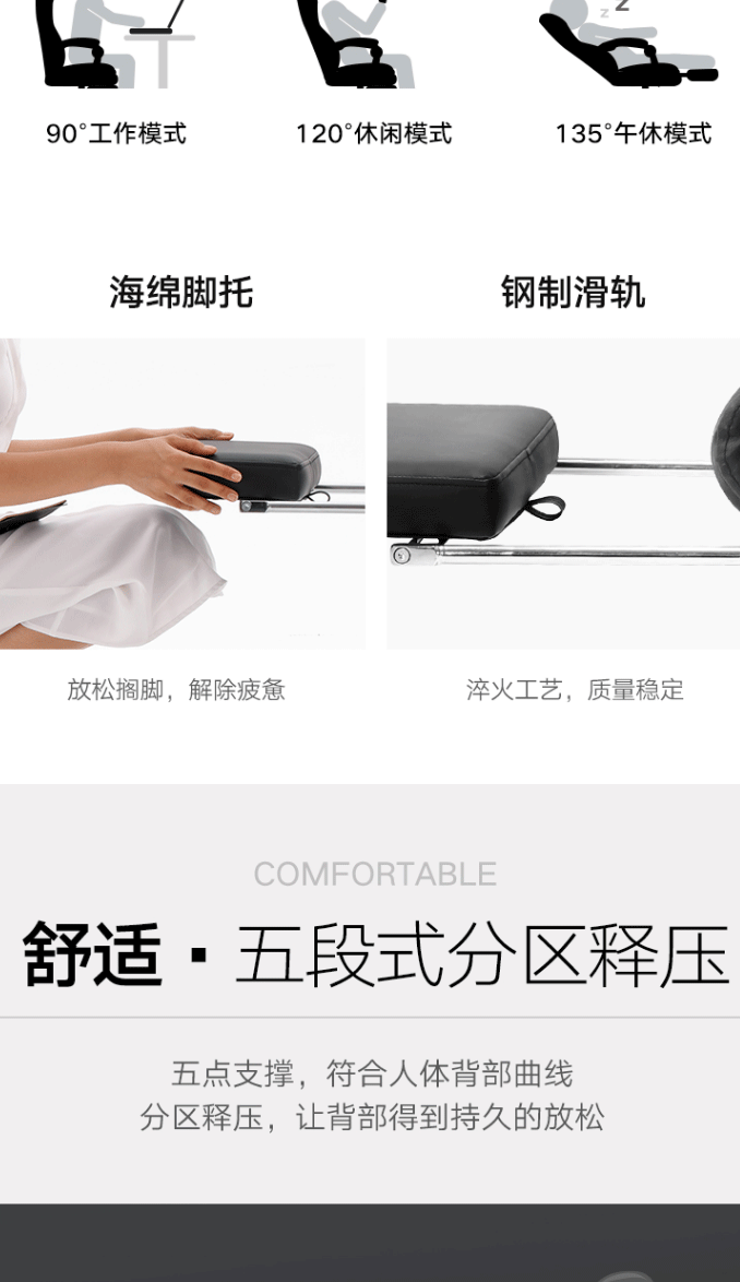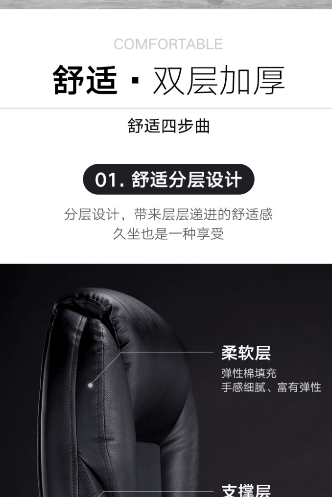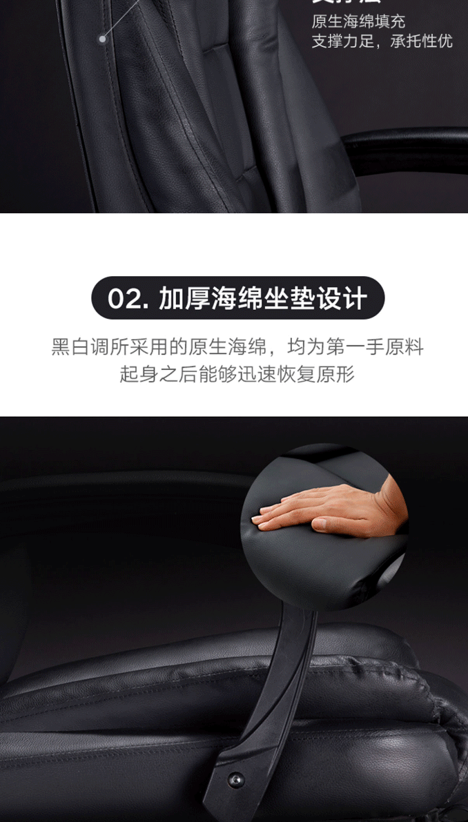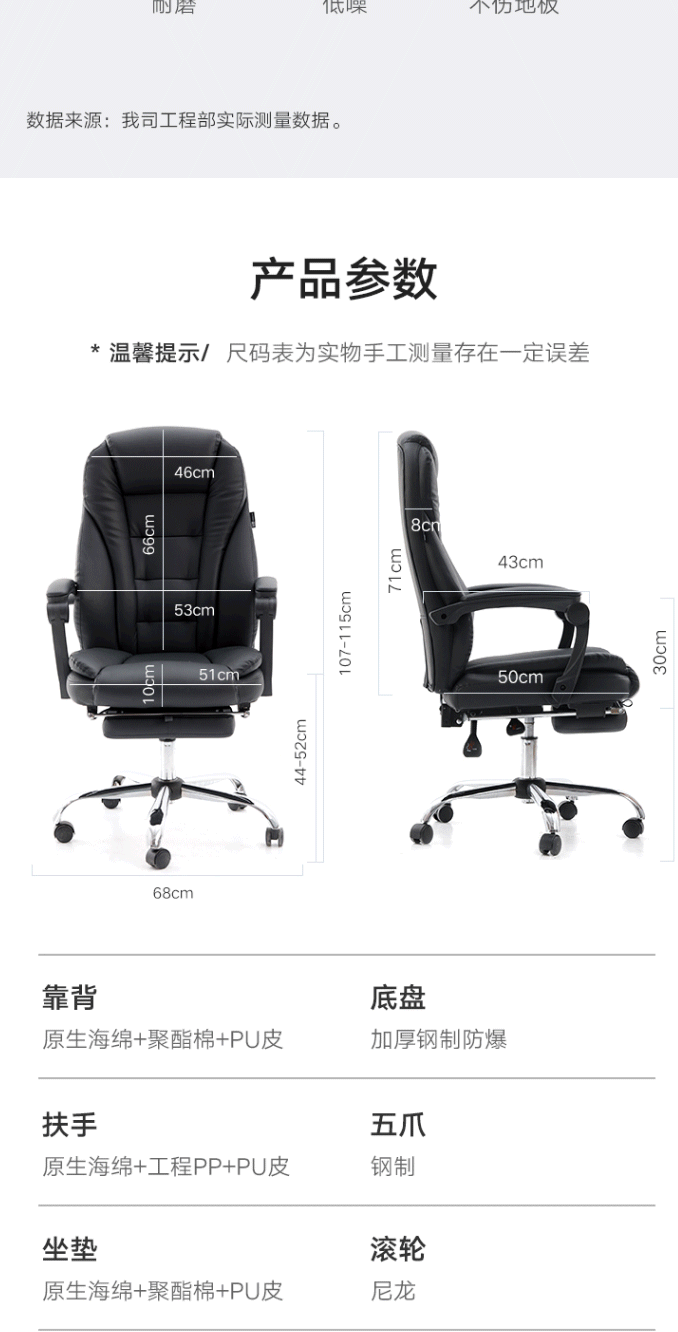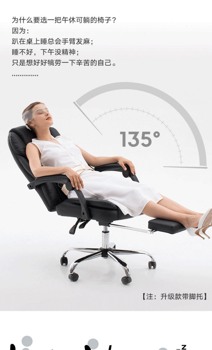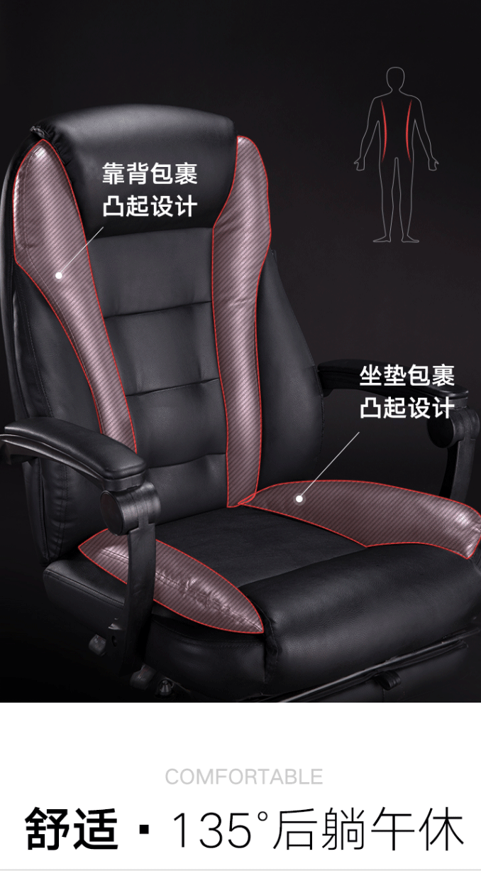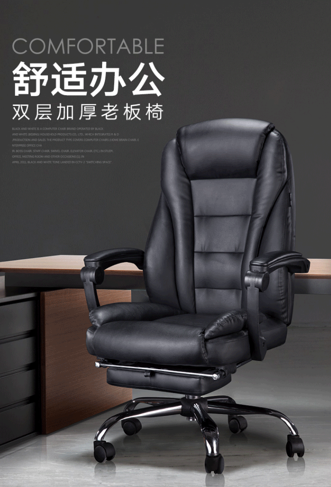 商品名称:黑白调 皮椅 办公椅 电脑椅子 可躺旋转 带脚托
