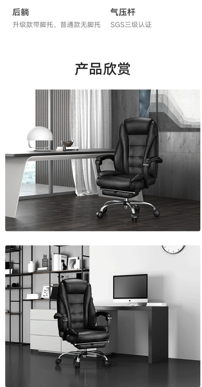 黑白调 皮椅 办公椅 电脑椅子 可躺旋转 带脚托