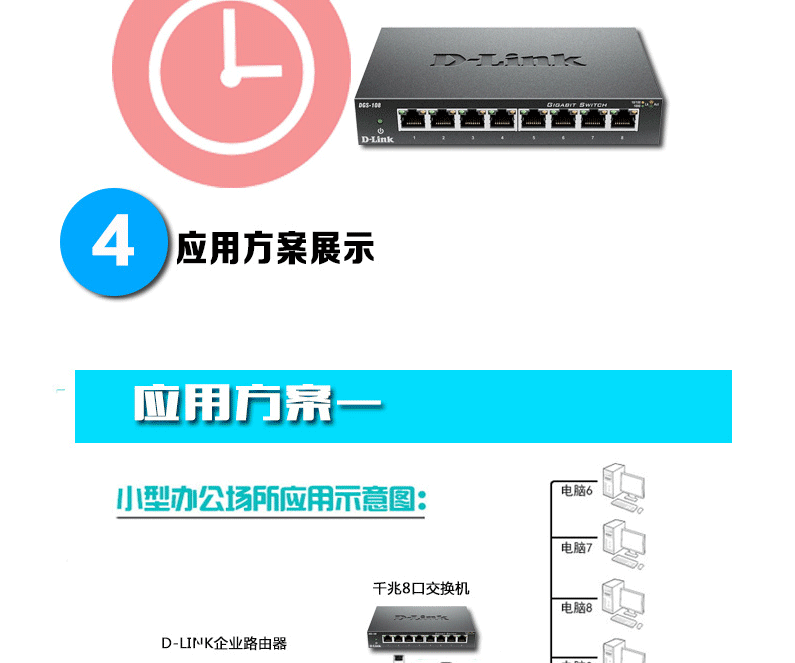 商品名称:友讯(D-Link)DGS-108 8口全千兆铁壳桌面型可壁挂非网管以太网交换机网络监控分线器