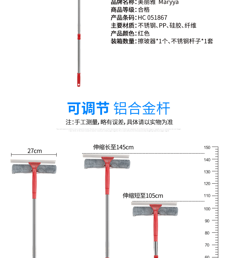 商品名称:美丽雅 玻璃刮擦窗器 清洁擦玻璃神器刮水器洗刮合一 051867