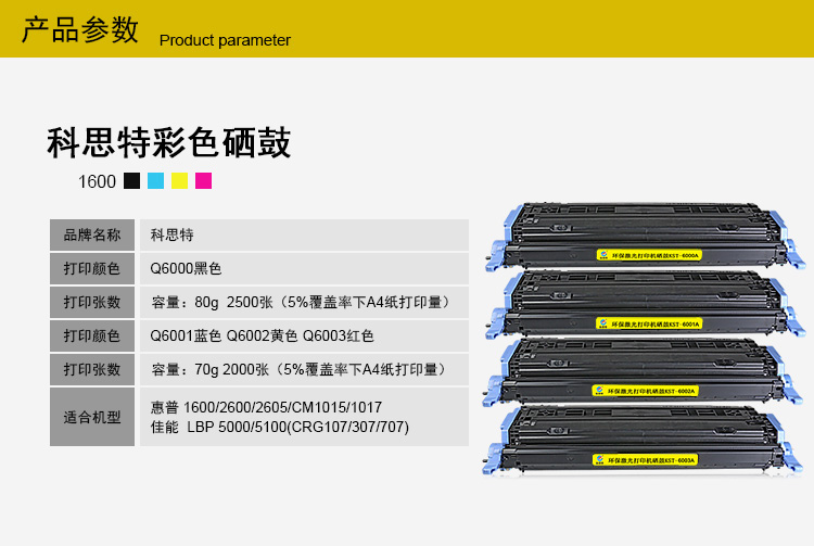 商品名称:科思特Q6000A硒鼓 适用惠普1600 2600 2605 CM1015 黑色 专业版