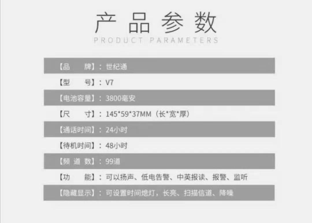 商品名称:世纪通V7对讲机手台 10W大功率无线3800毫安