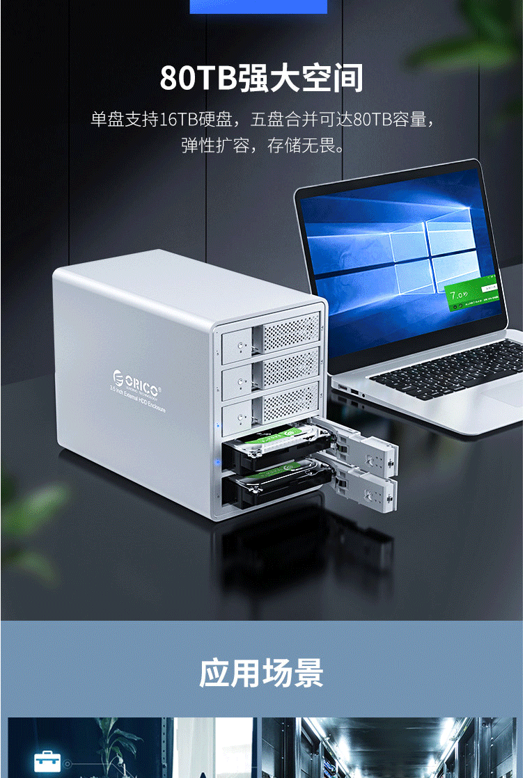 奥睿科(ORICO)硬盘柜 五盘位磁盘柜3.5英寸USB3.0 SATA串口台式机外接硬盘盒子 全铝免工具五盘位 黑色9558U3