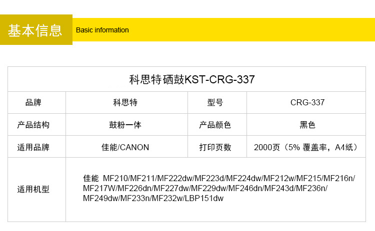 商品名称:科思特CRG337硒鼓 适用佳能 MF216n MF227dw MF236n LBP151dw 专业版