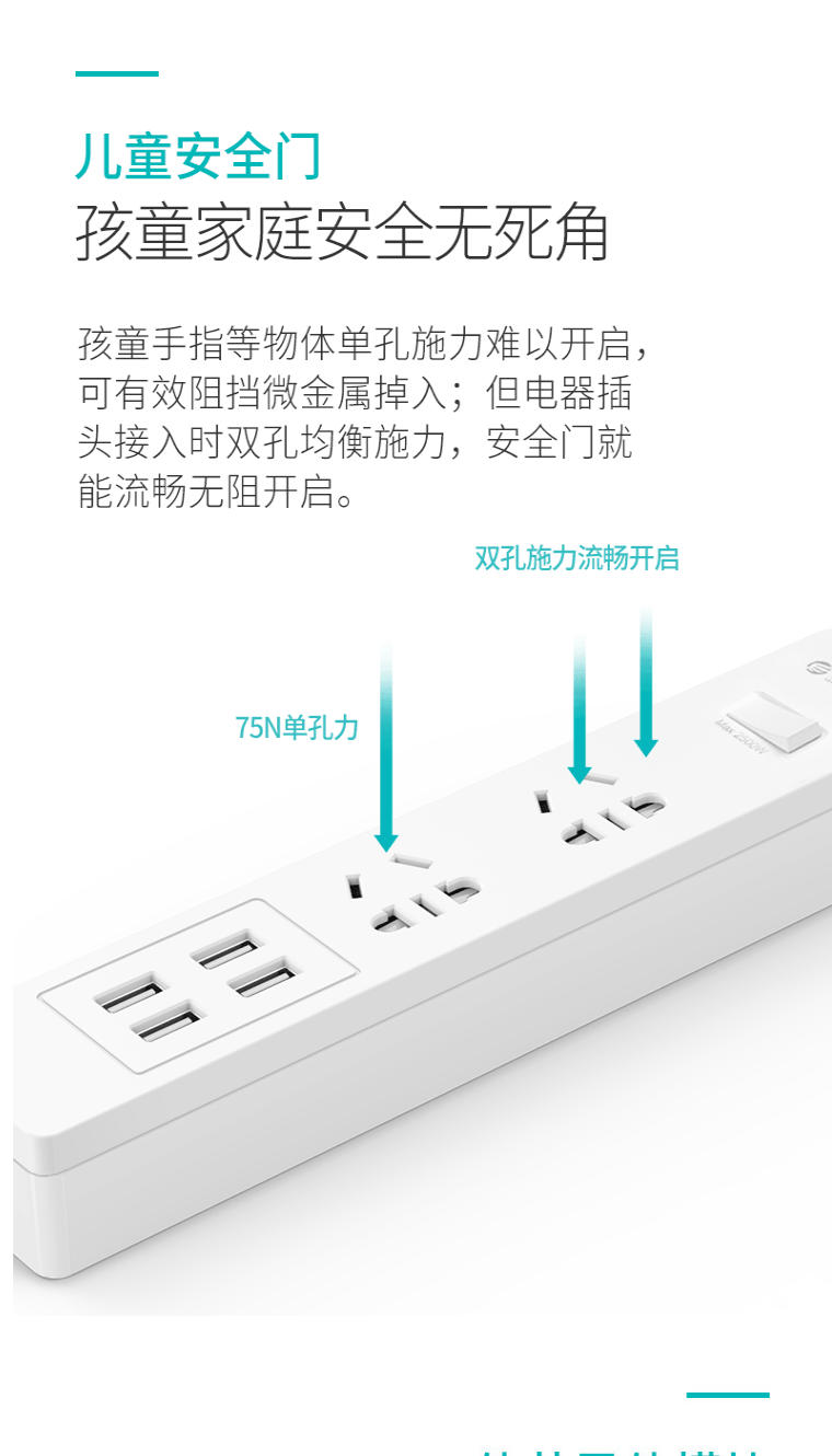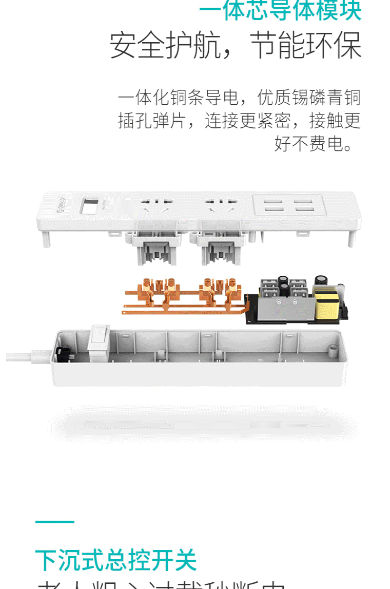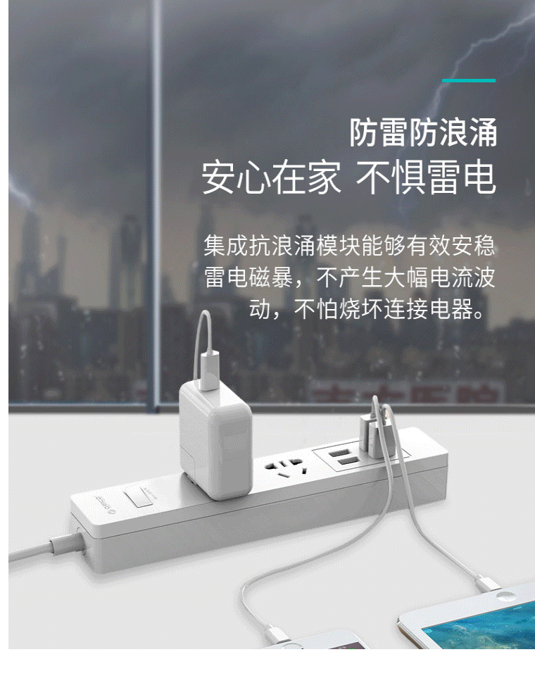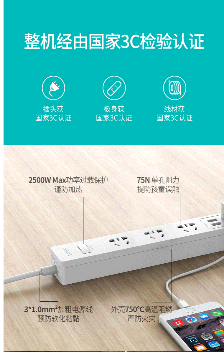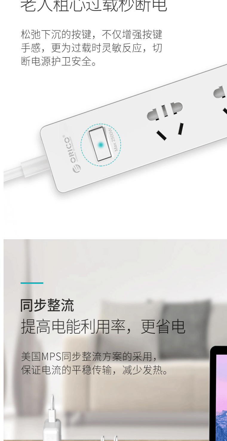 奥睿科(ORICO)小U插座/插线板/接线板 3位插口排插/插排