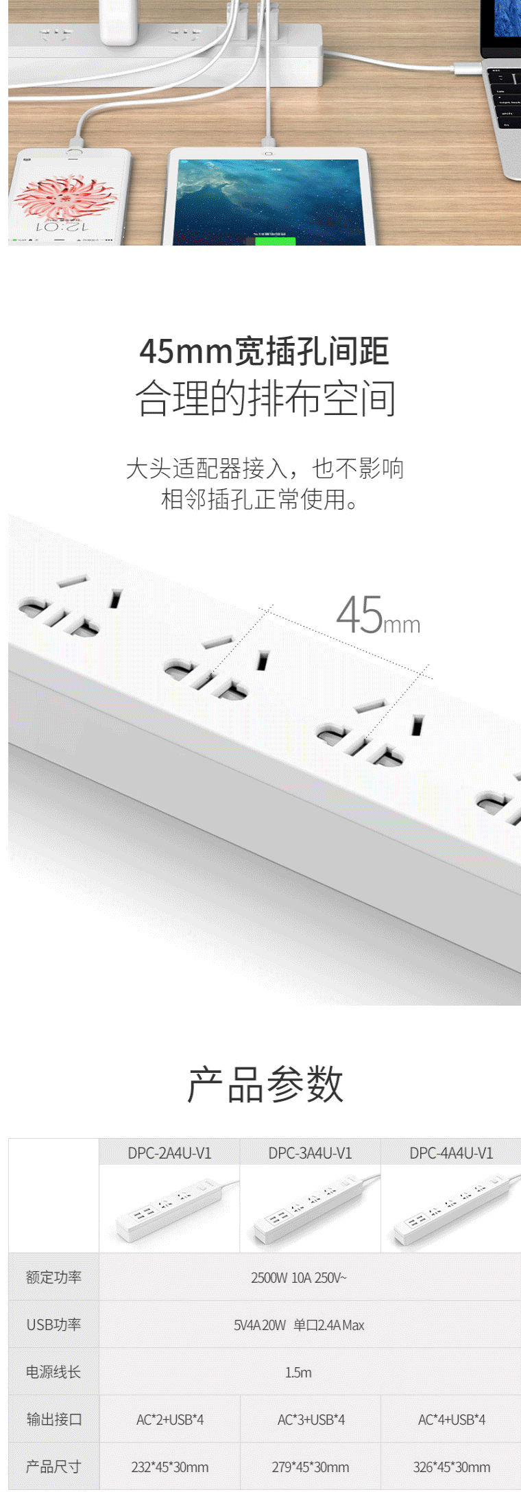 商品名称:奥睿科(ORICO)小U插座/插线板/接线板 3位插口排插/插排