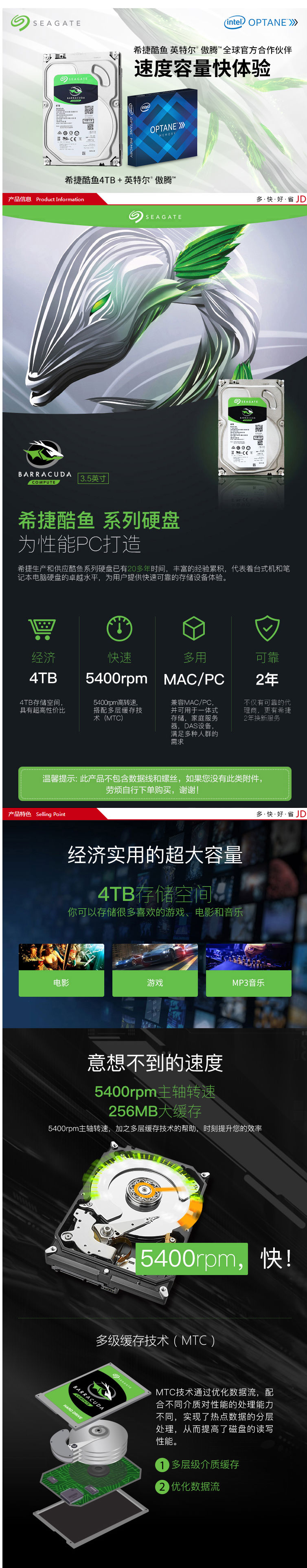 商品名称:希捷(Seagate)4TB台式机机械硬盘 SATA接口 希捷酷鱼BarraCuda系列(ST4000DM004)