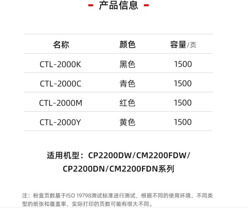 商品名称:奔图(PANTUM)CTL-2000M 红色粉盒 CTL-2000系列(适用于CP2200DW/CM2200FDW/CP2200DN/CM2200FDN)