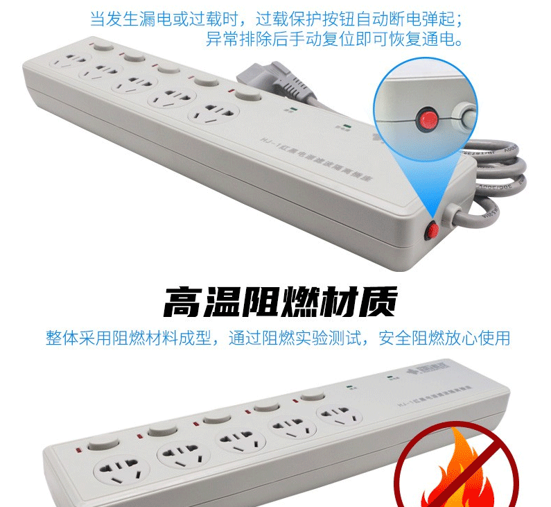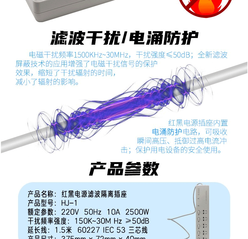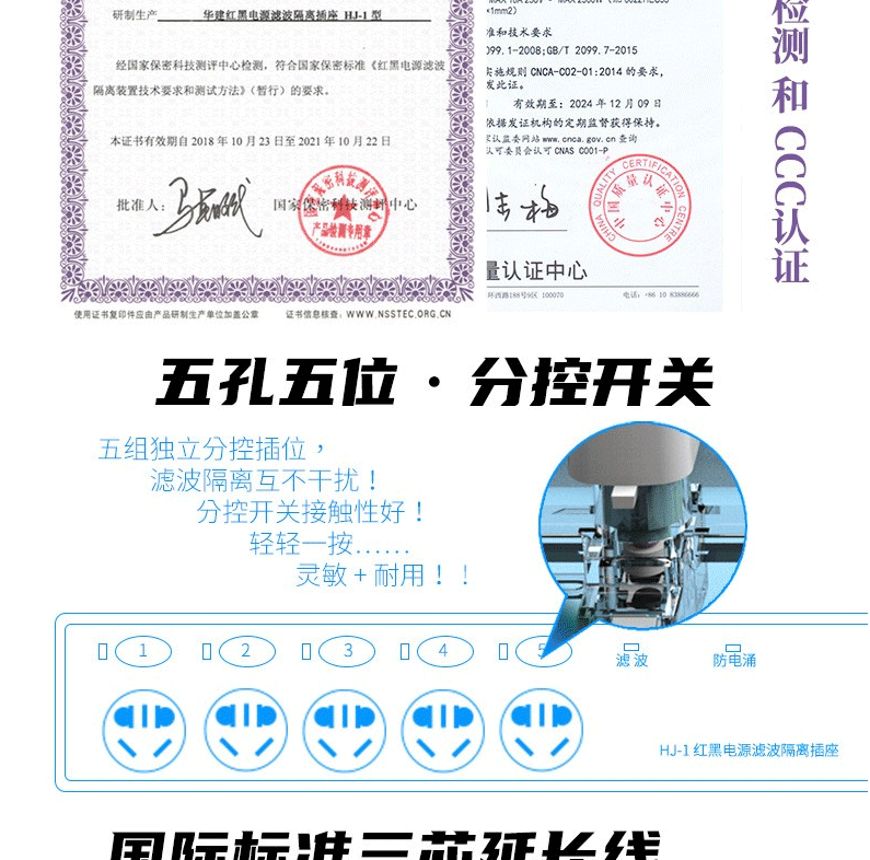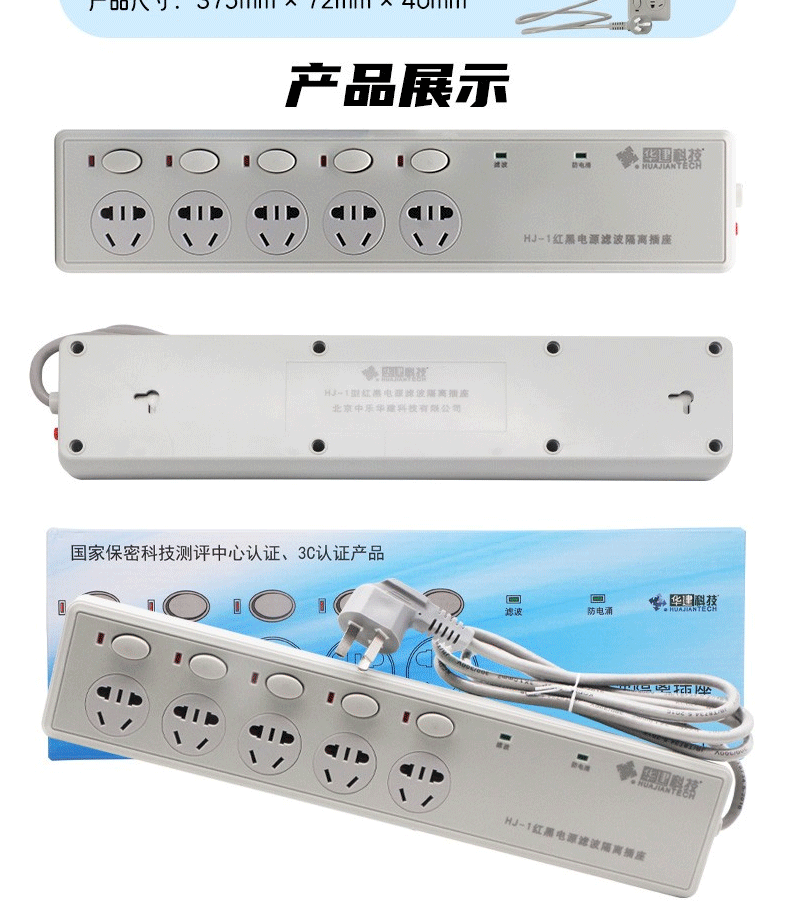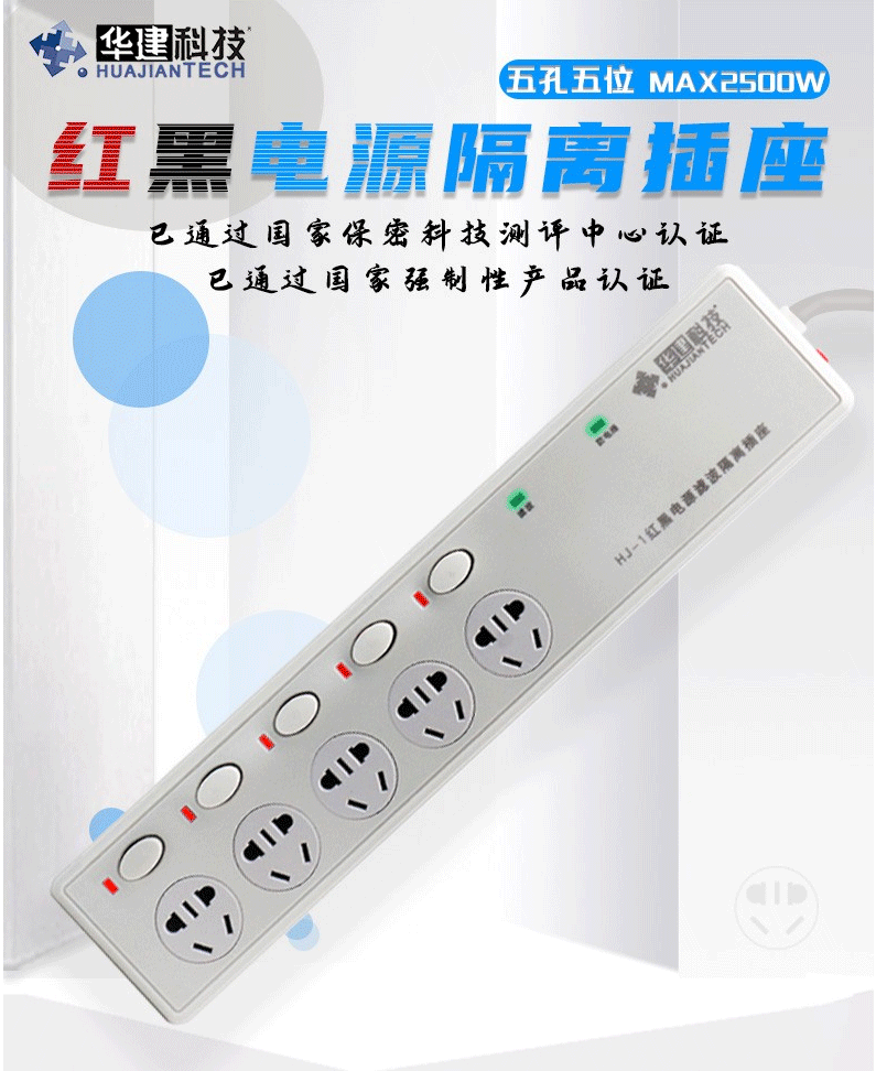 商品名称:华建 红黑电源 隔离滤波插座 华信大功率延长线插排 5孔五位分控开关防电涌磁泄密插线板