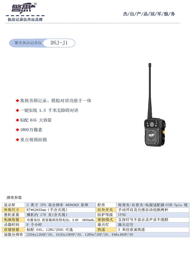商品名称:警杰DSJ-J1执法记录仪 黑色 64G