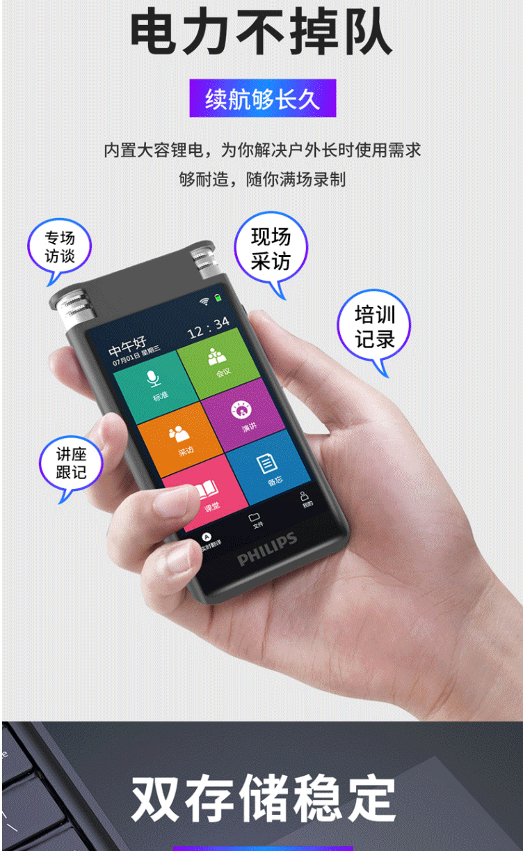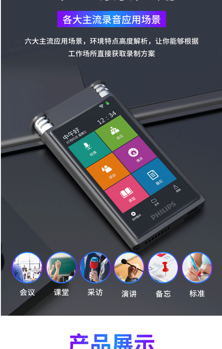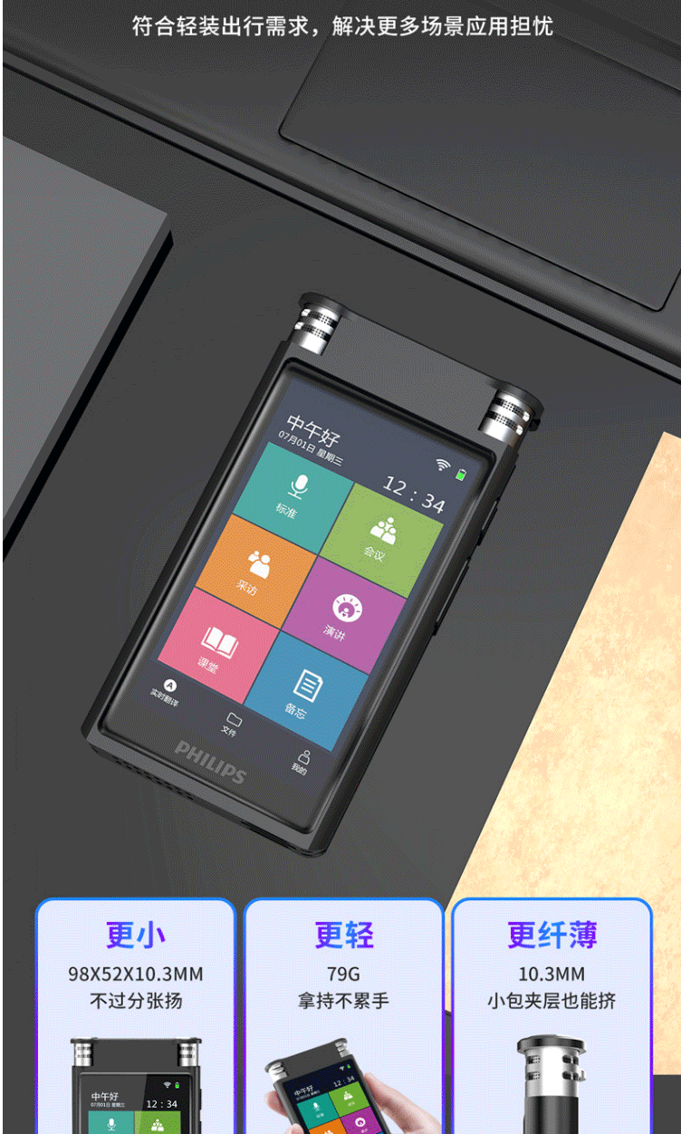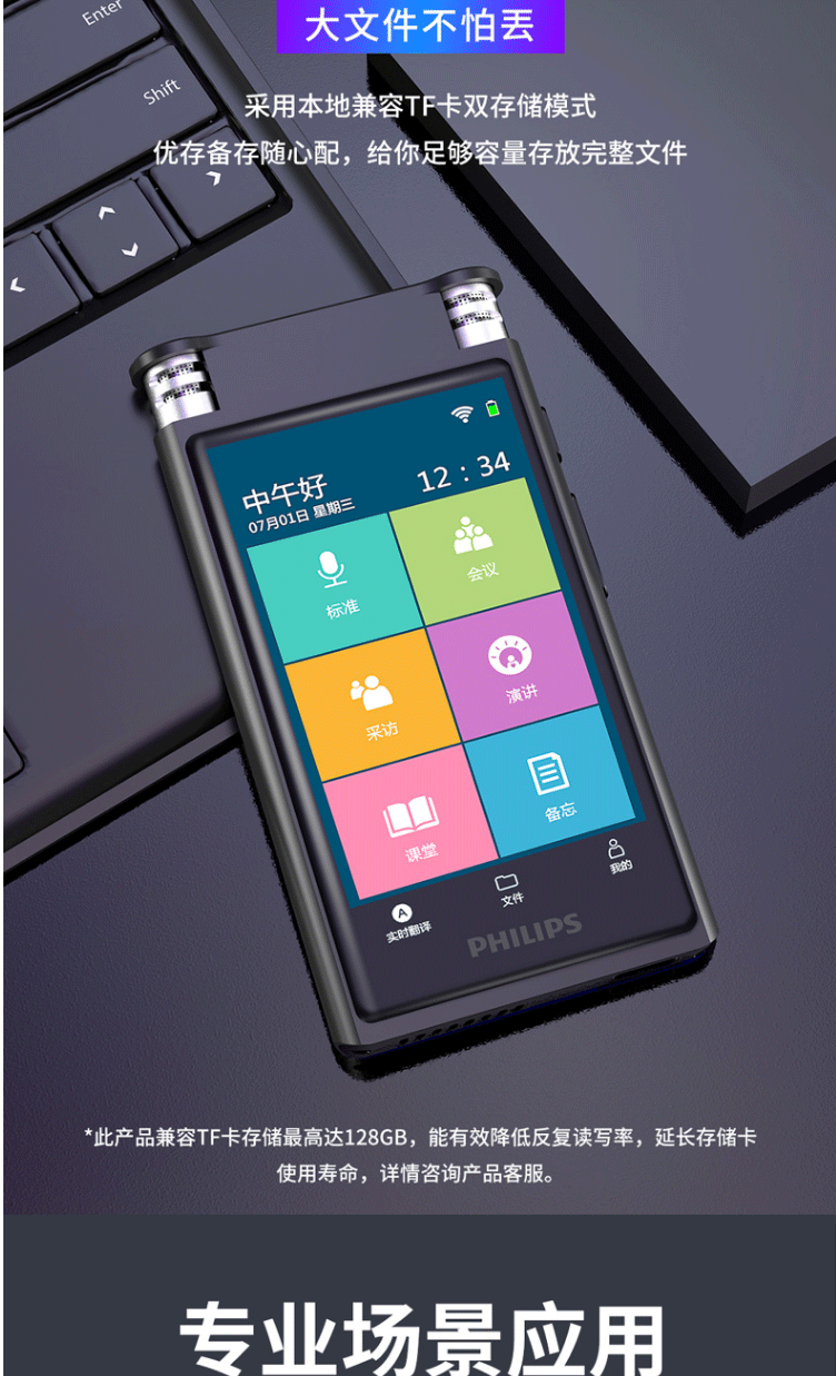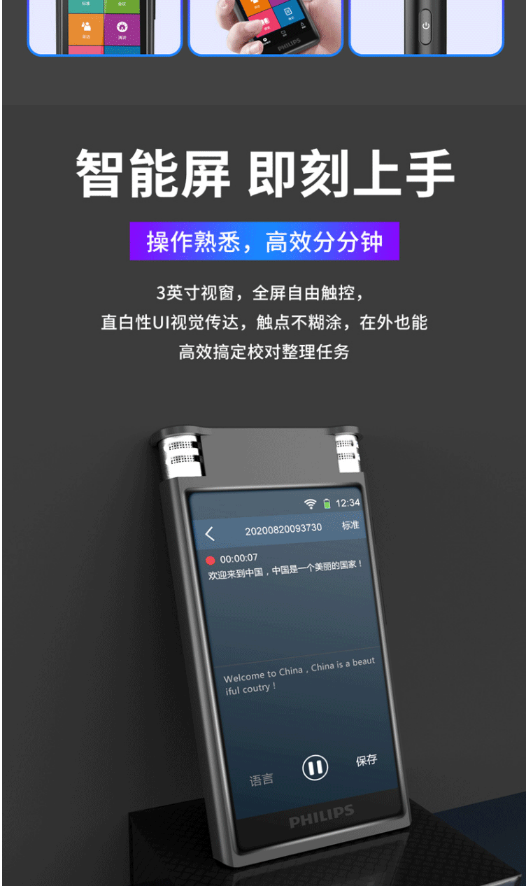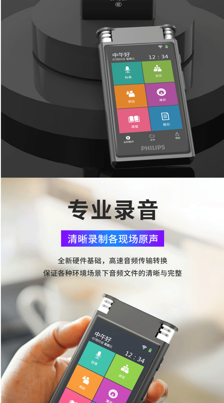 商品名称:飞利浦(PHILIPS)VTR8600 录音笔 16G 终身免费转写 录音实时翻译 专业级智能降噪