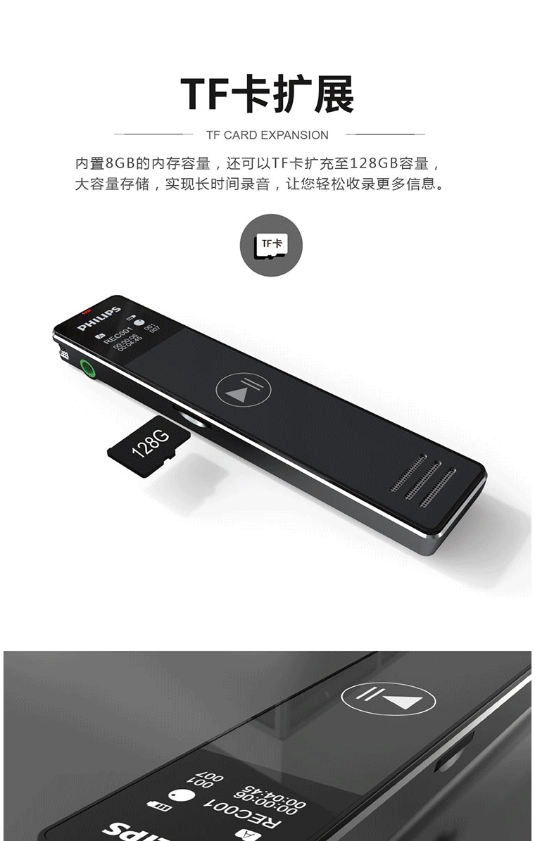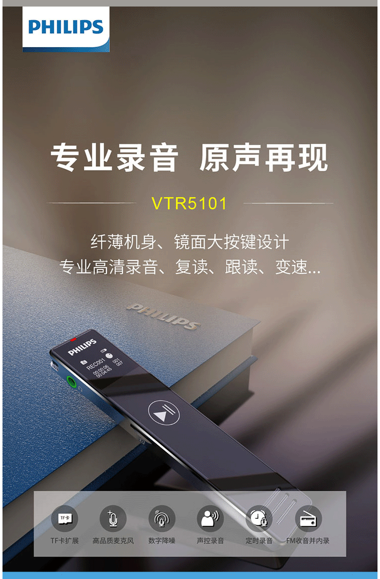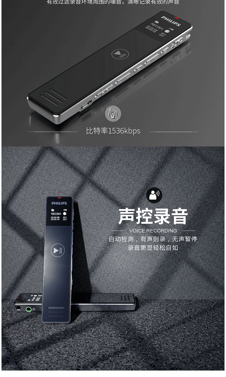 商品名称:飞利浦(PHILIPS)VTR5101 8G 录音笔 商务会议 学习记录