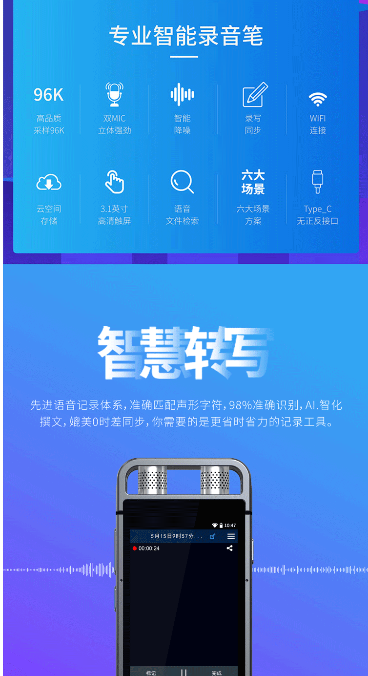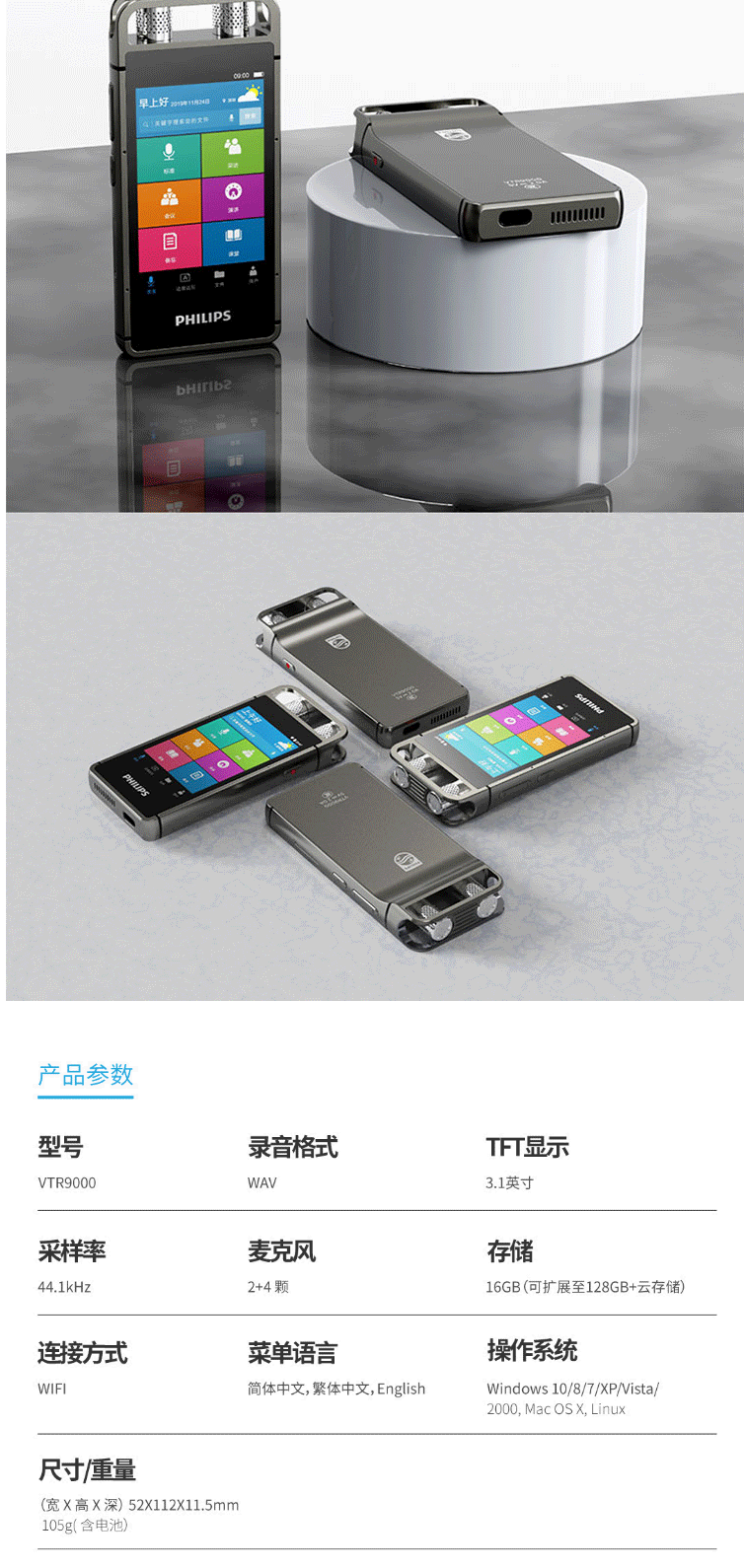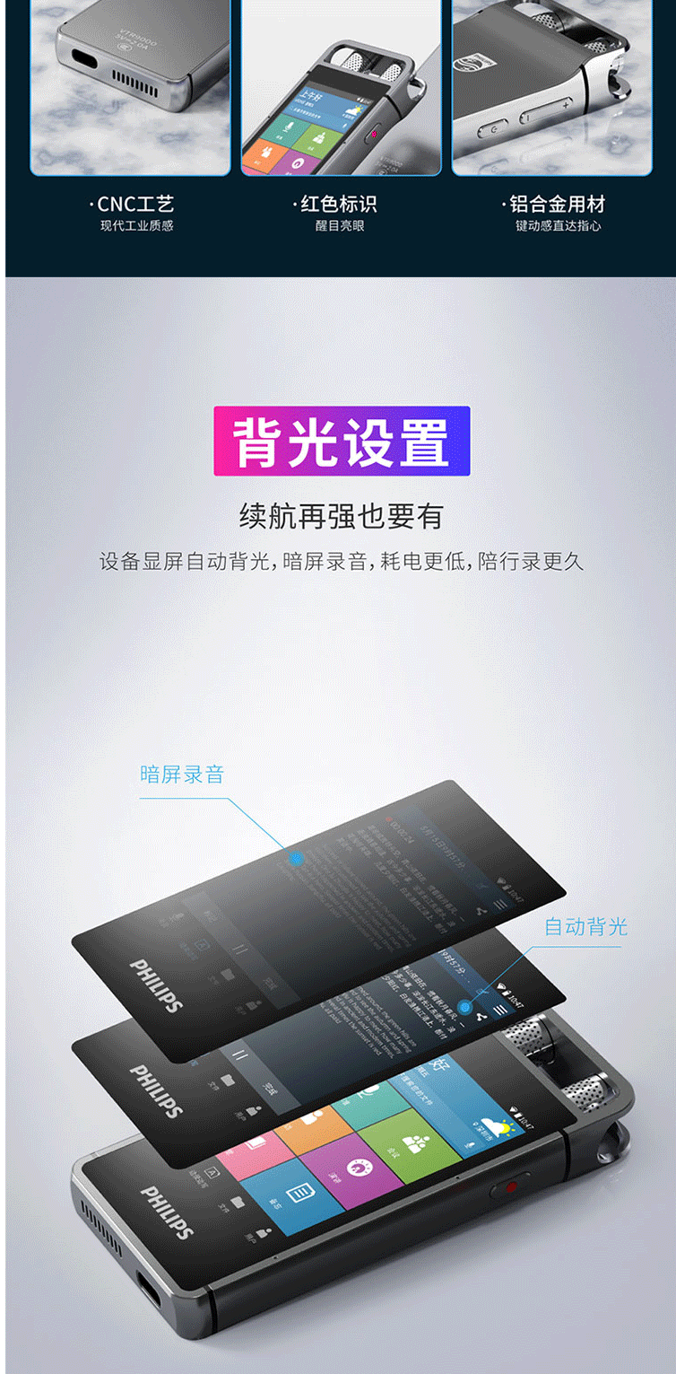 商品名称:飞利浦(PHILIPS)VTR9000 AI智能录音笔 16G 终身免费转文本 录写同步 WIFI 翻译 云空间储存
