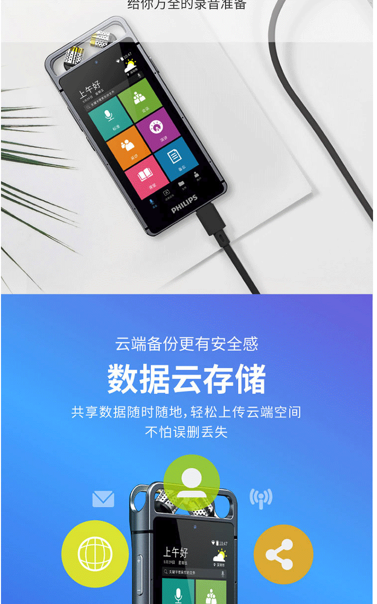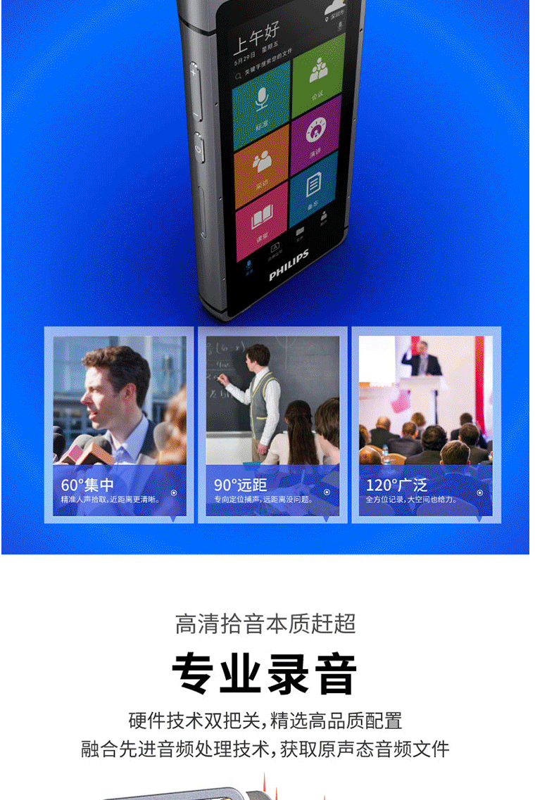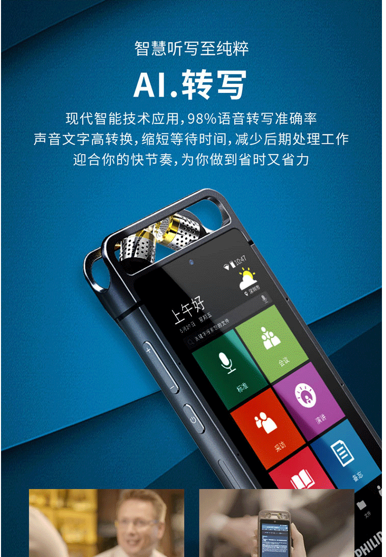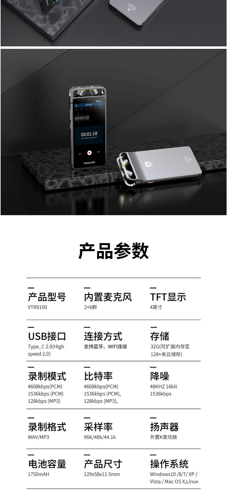 商品名称:飞利浦(PHILIPS)VTR9100 AI智能录音笔 32G 人脸识别 终身免费转文本 录写同步 WIFI 翻译 云空间储存