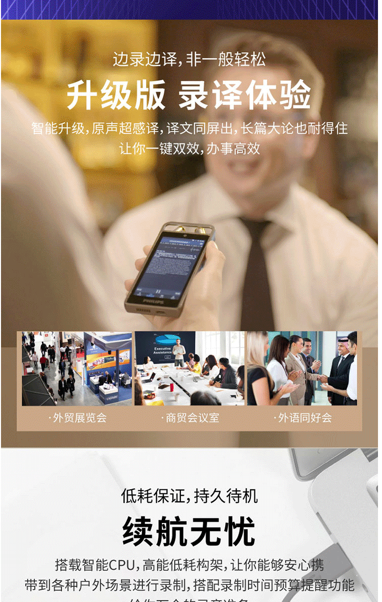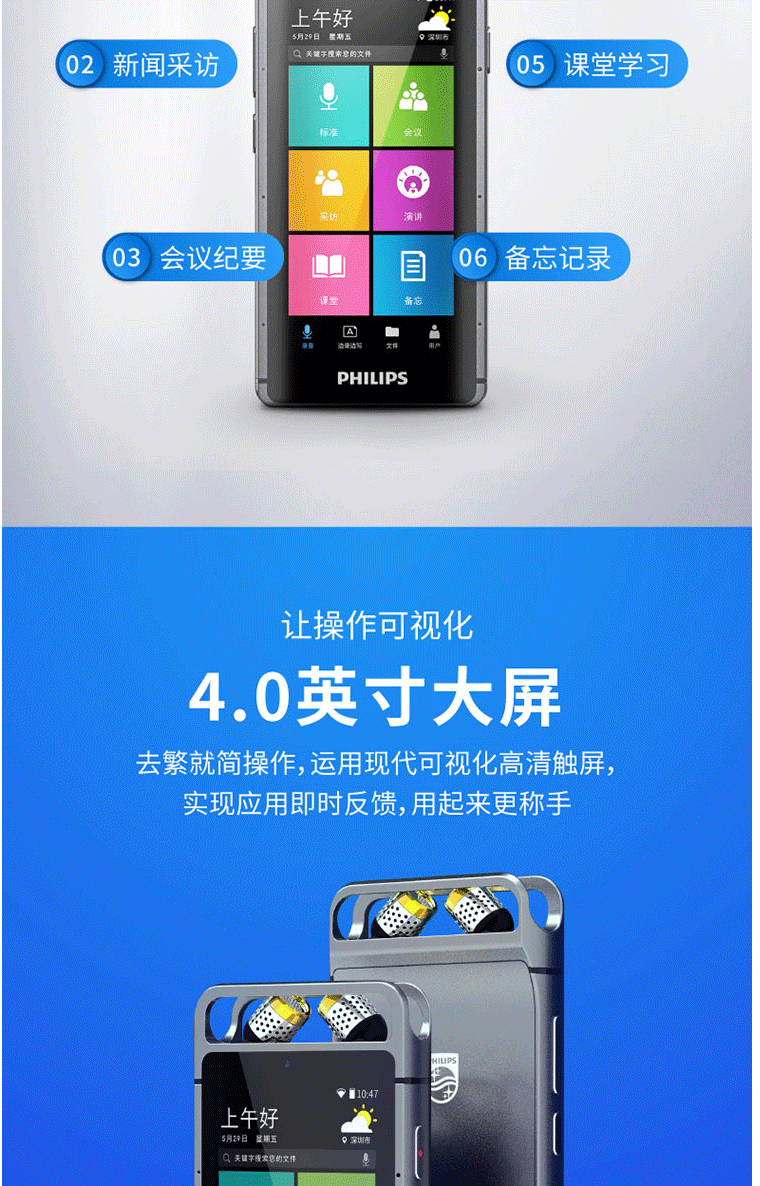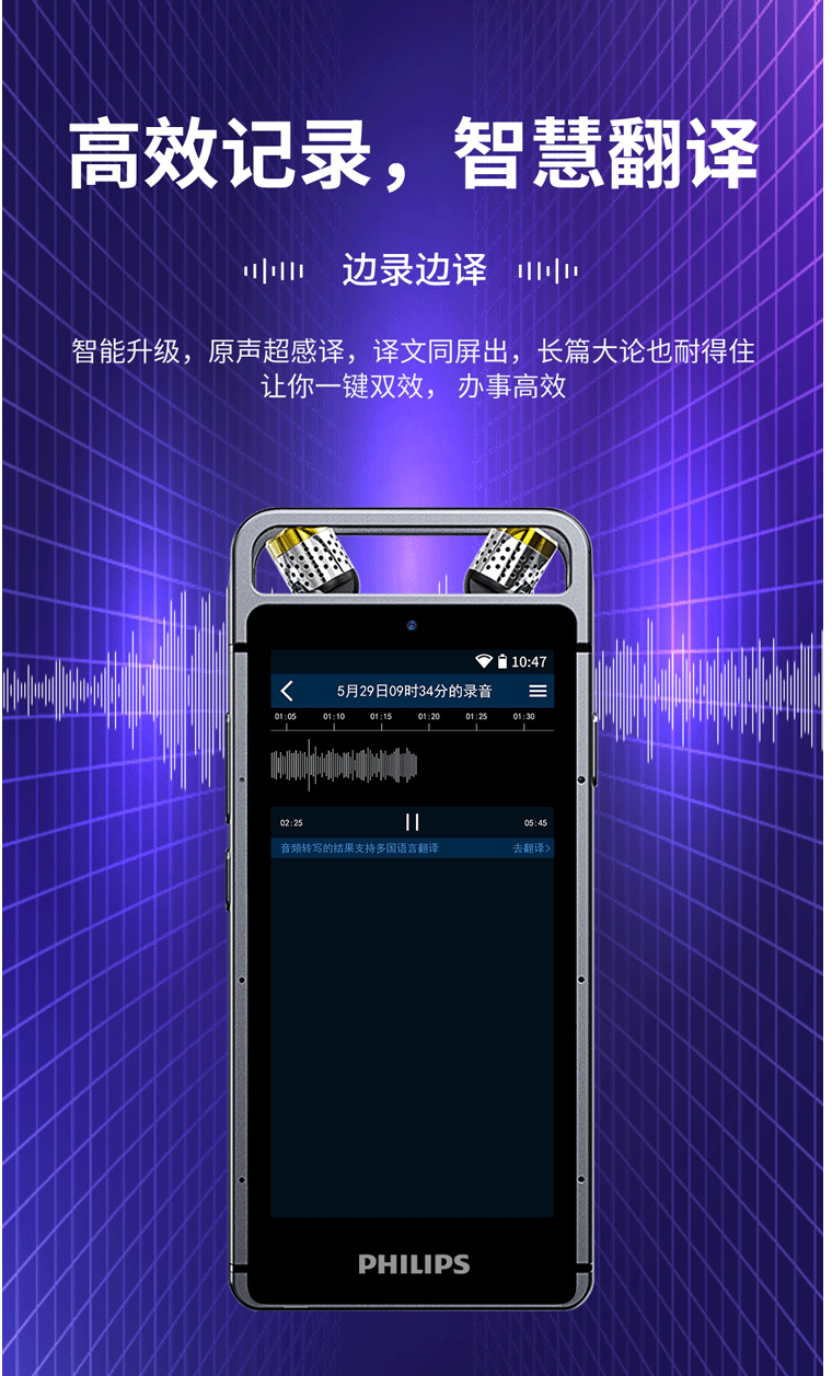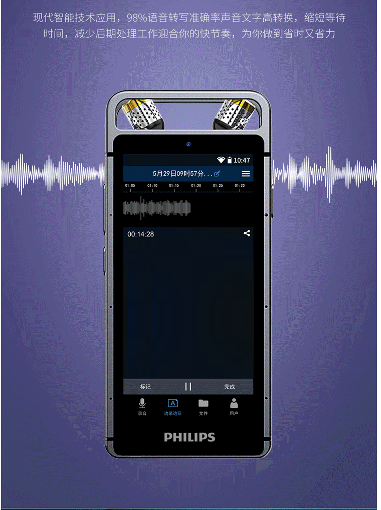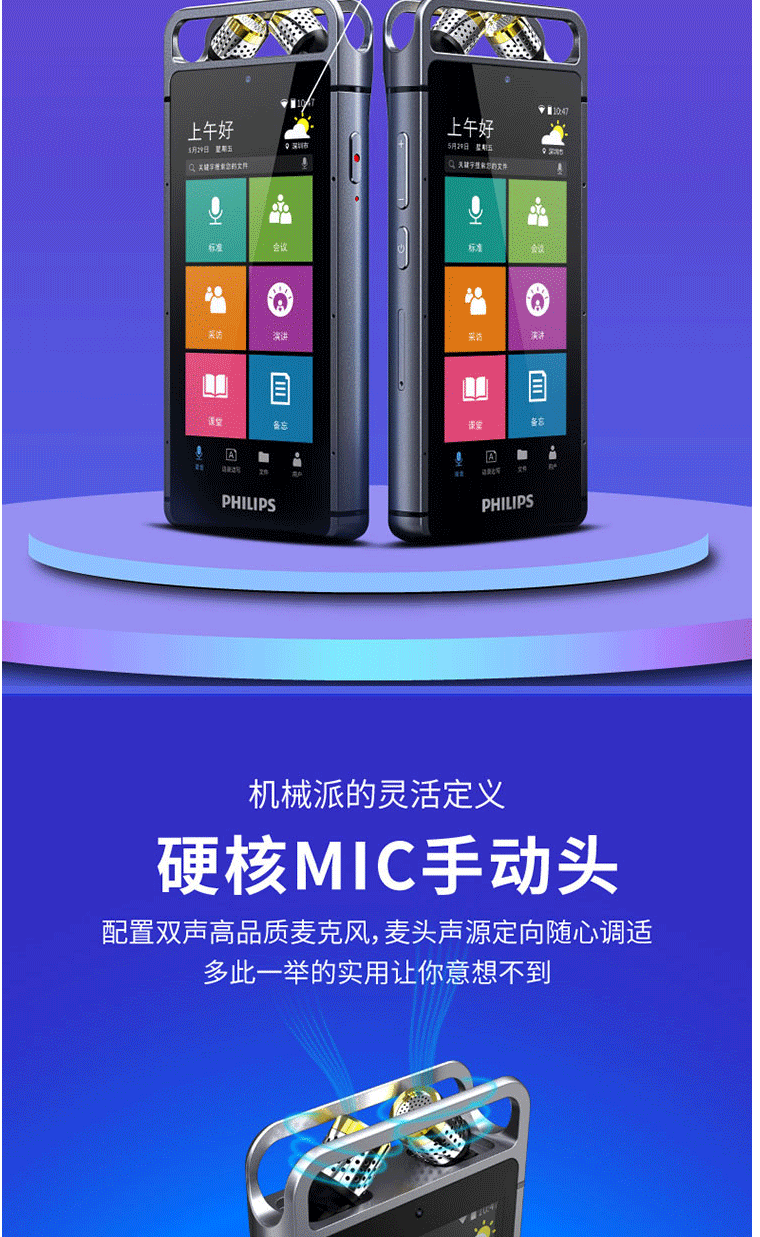 商品名称:飞利浦(PHILIPS)VTR9100 AI智能录音笔 32G 人脸识别 终身免费转文本 录写同步 WIFI 翻译 云空间储存