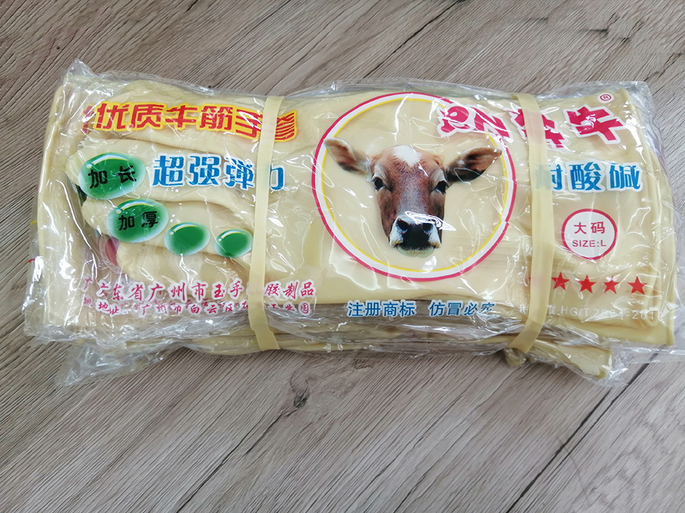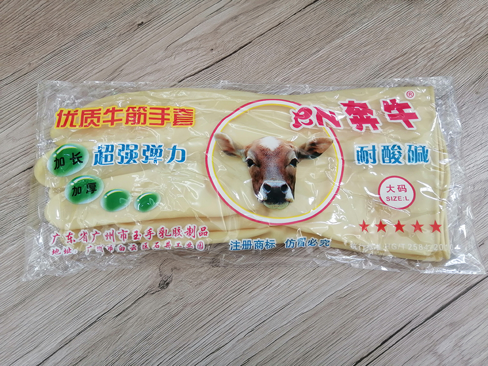 商品名称:奔牛 优质牛筋手套 耐酸碱胶皮手套 大号 10付/捆