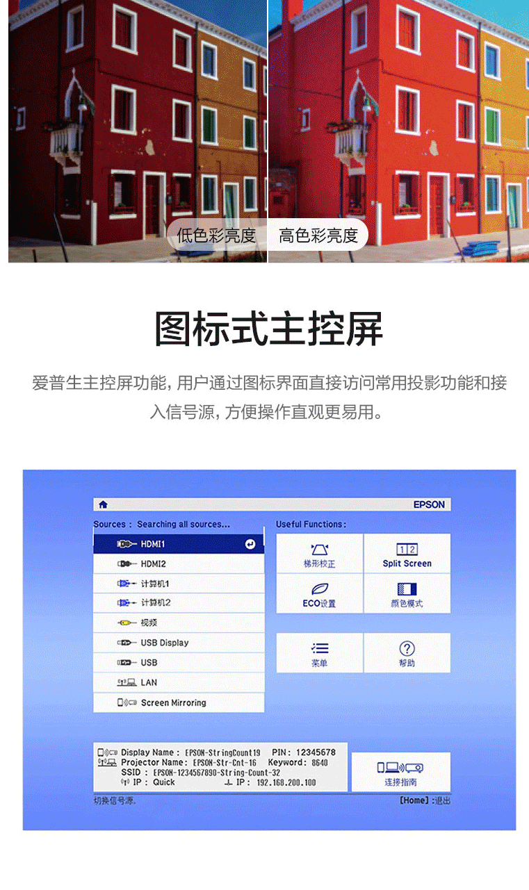 爱普生(EPSON)CB-E10投影仪商务办公投影机 3600ANSI流明