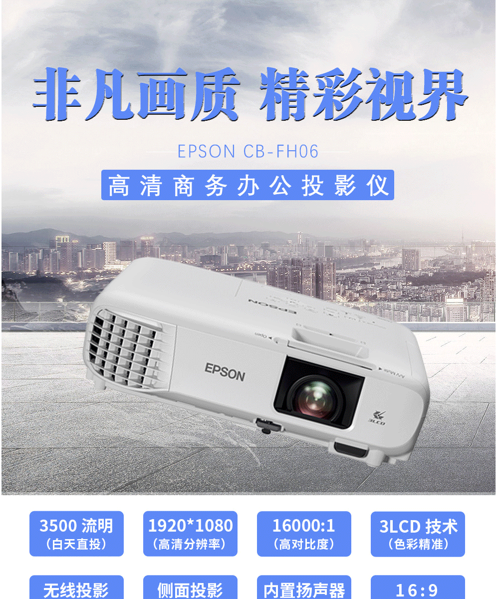 爱普生(EPSON)CB-FH06 投影仪 投影机办公(1080P全高清 3500流明 支持侧投 )投影