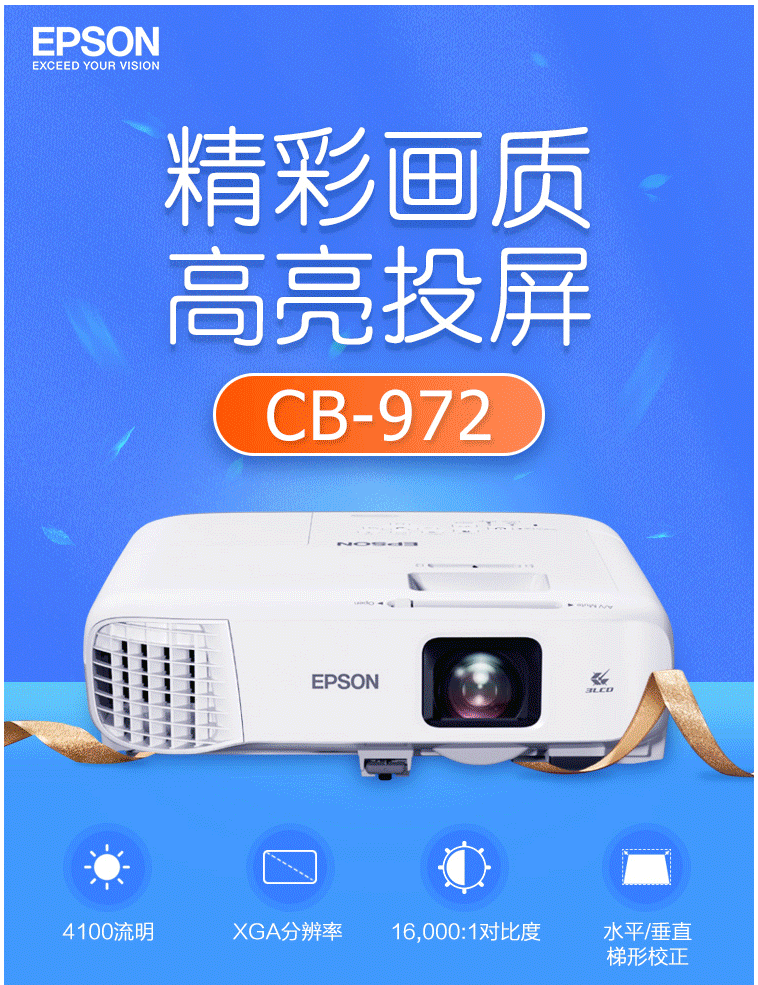爱普生(EPSON)CB-972 投影仪 投影机 (4100流明 双HDMI接口 支持侧面投影)