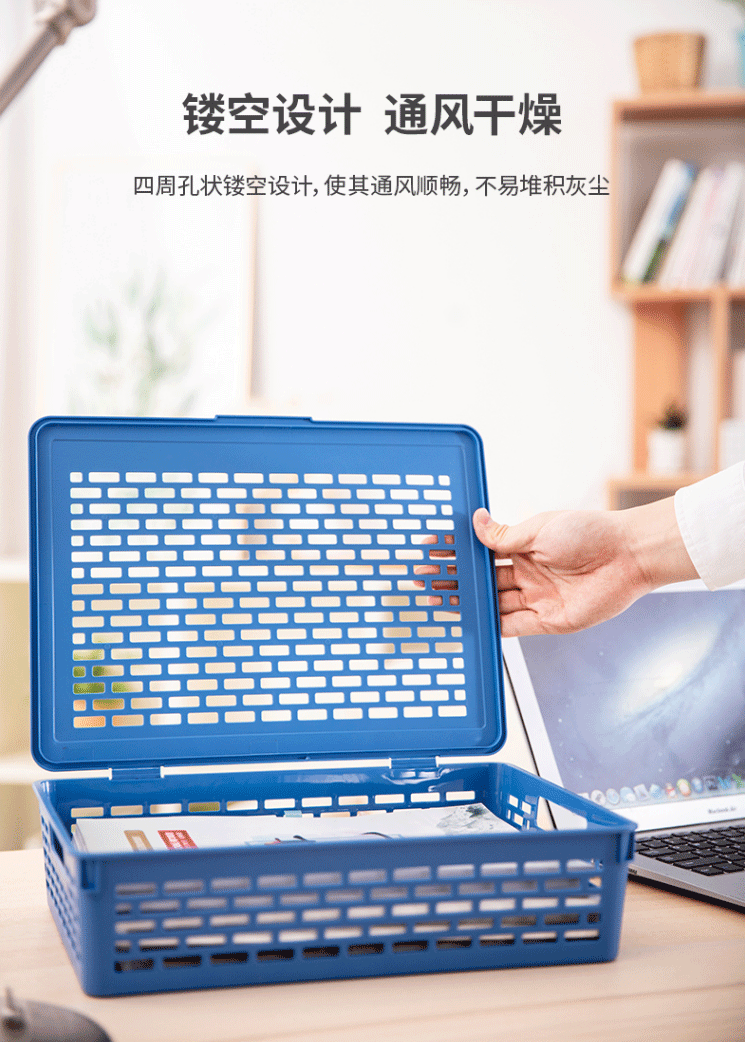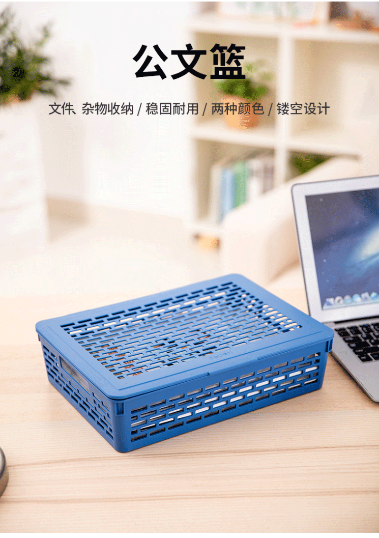 得力(deli)923 A4带盖文件篮收纳篮塑料公文篮文件筐蓝色