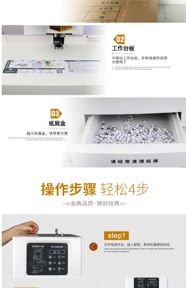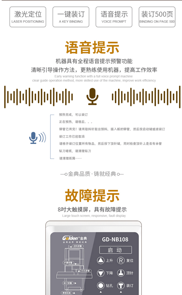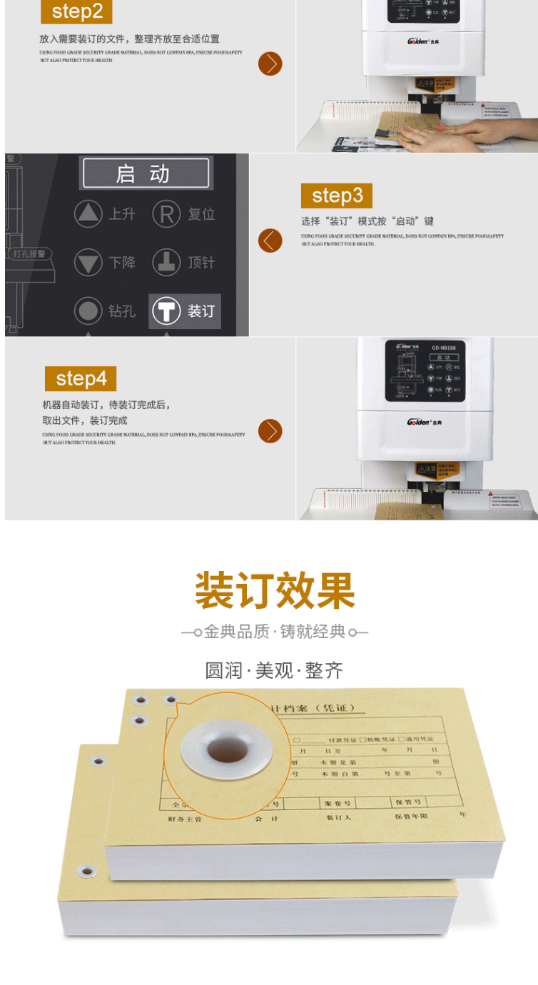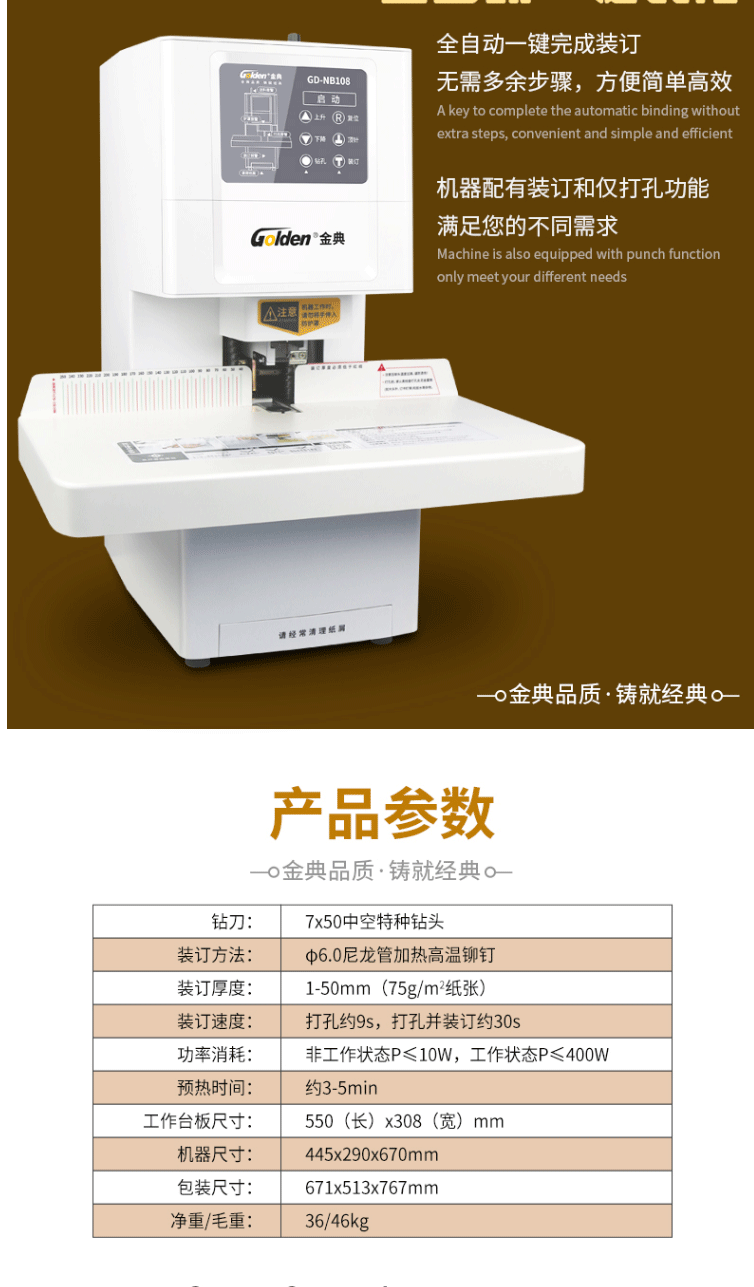商品名称:金典(GOLDEN)GD-NB108装订机财务凭证装订机 全自动打孔装订 无需人工一键装订