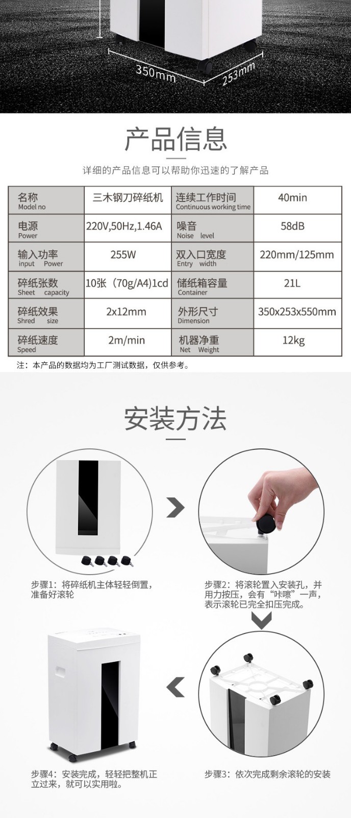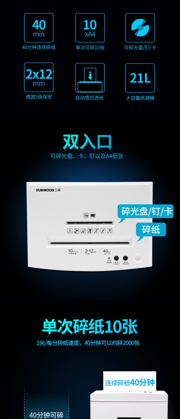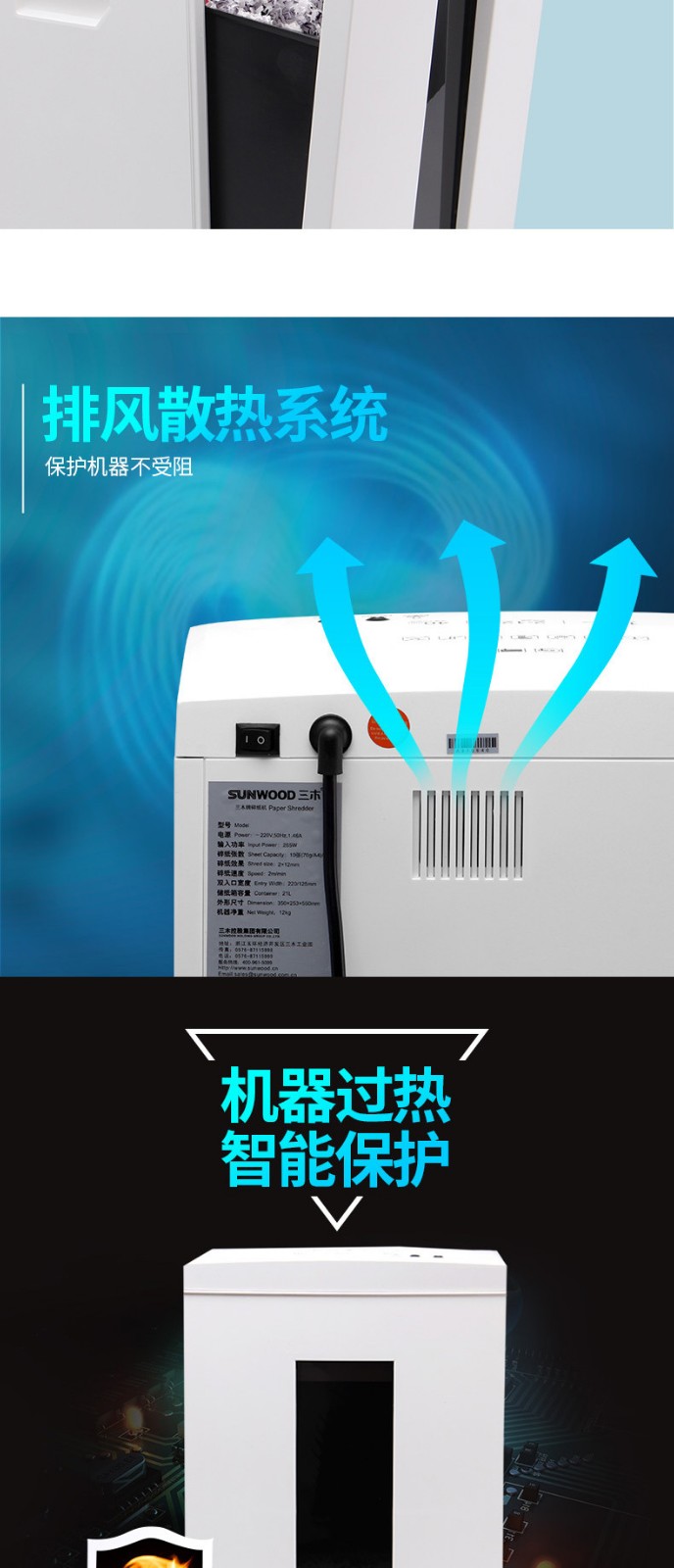 商品名称:三木碎纸机 大功率静音保密办公文件资料粉碎机 SD9112