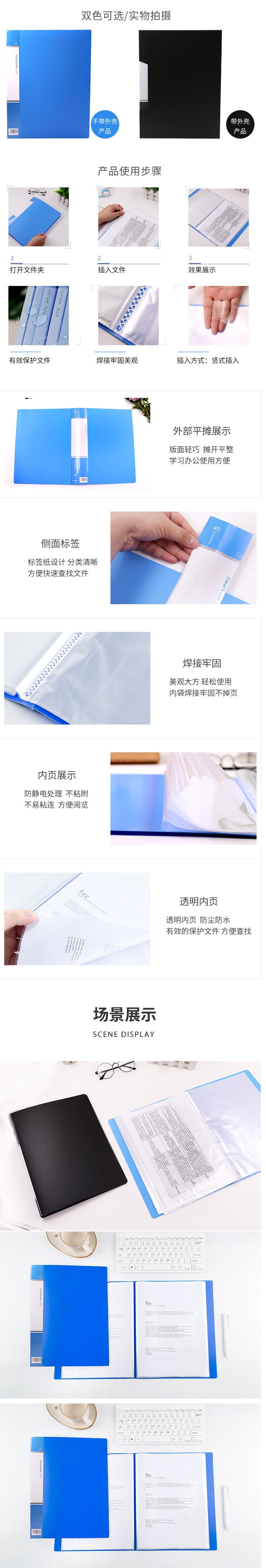 商品名称:欧标(MATE-IST)文件夹透明插页袋 30页资料册a4 B1973蓝色